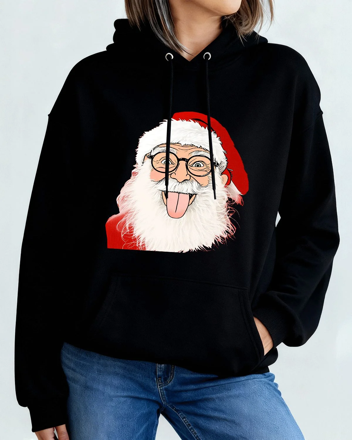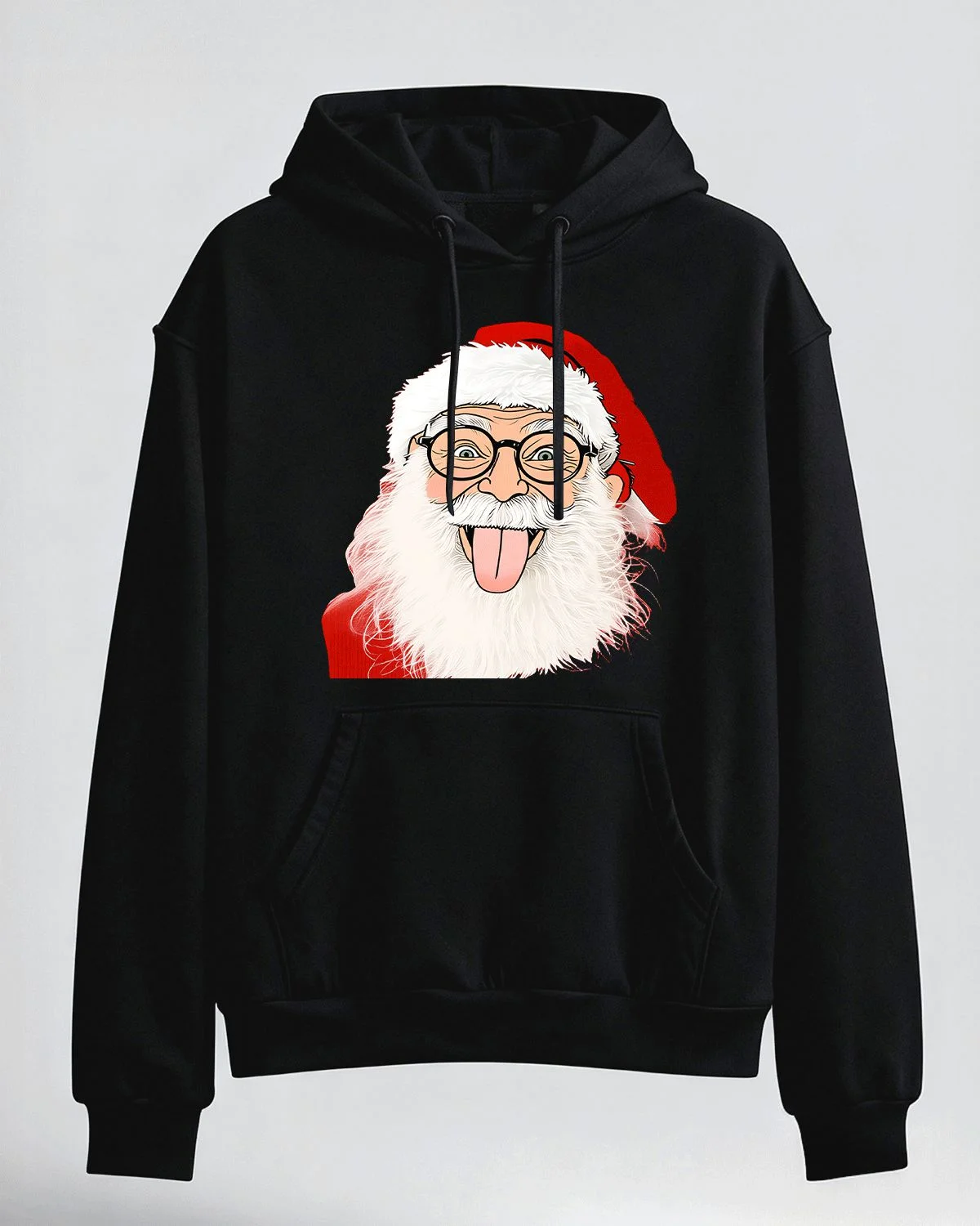 Christmas Santa with Red Hat Cozy Graphic Hoodie for Men and Women - Casual Vintage, Long Sleeve, Soft Fabric, Comfortable Fit