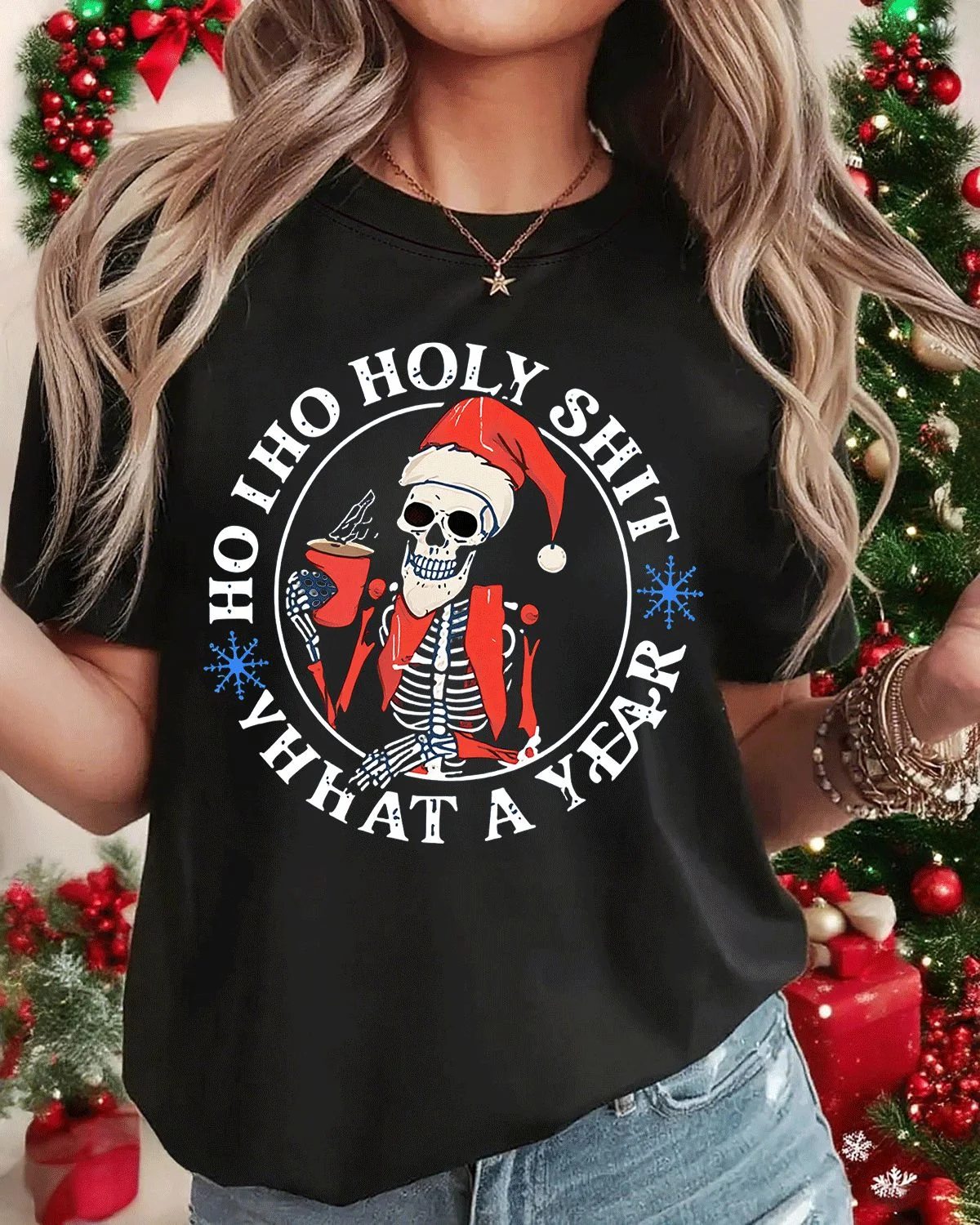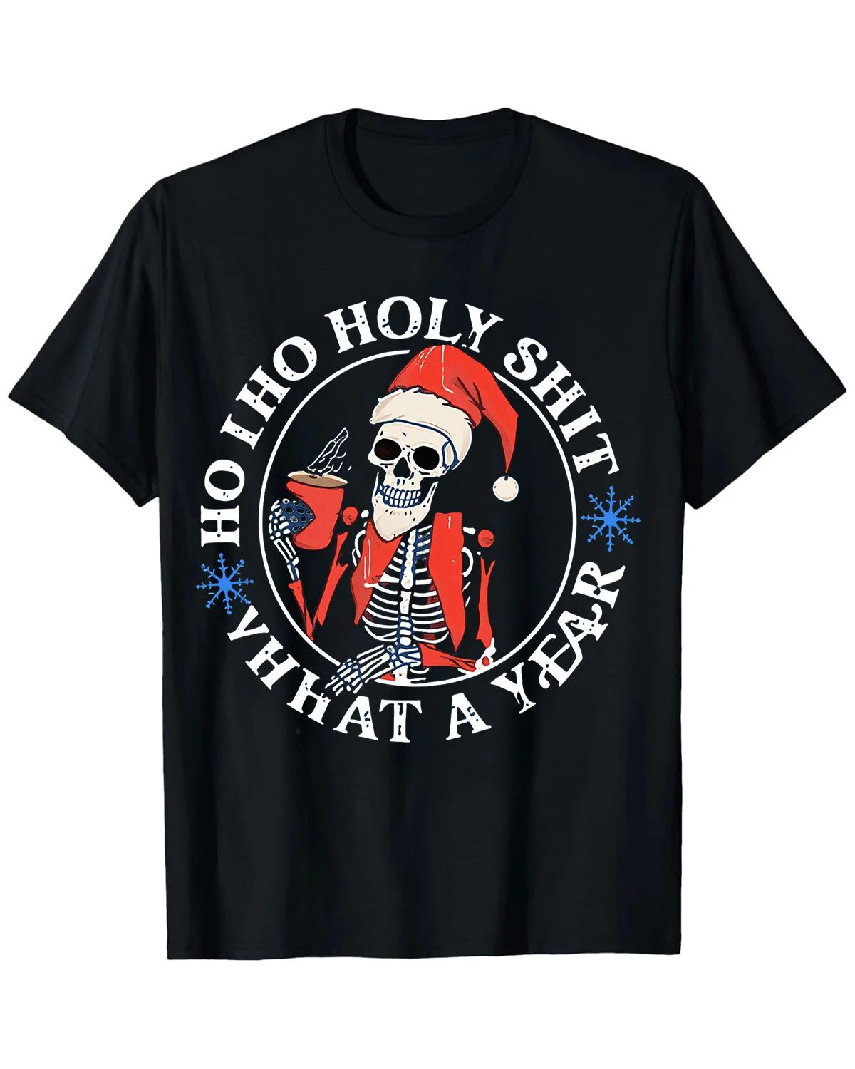 Christmas Skeleton Santa Funny Quote Summer Cotton Graphic T Shirt - Casual Retro, Short Sleeve, Soft Fabric, Comfortable Fit