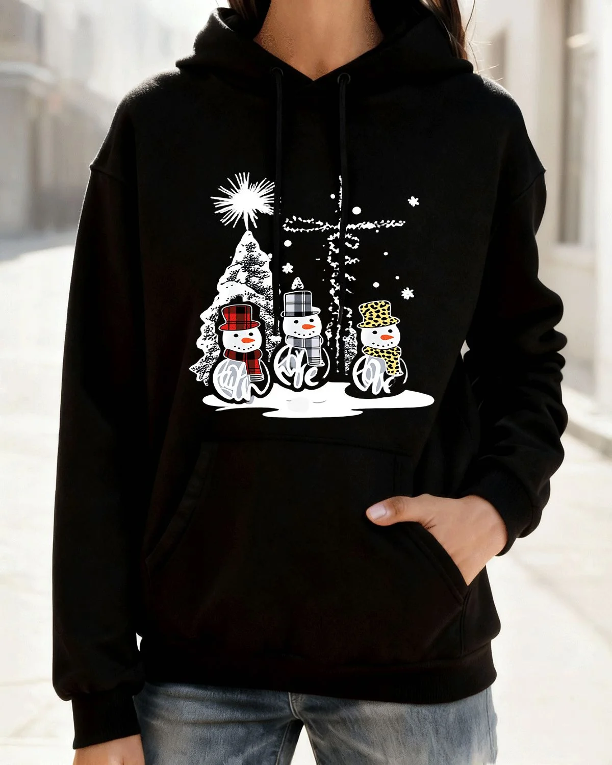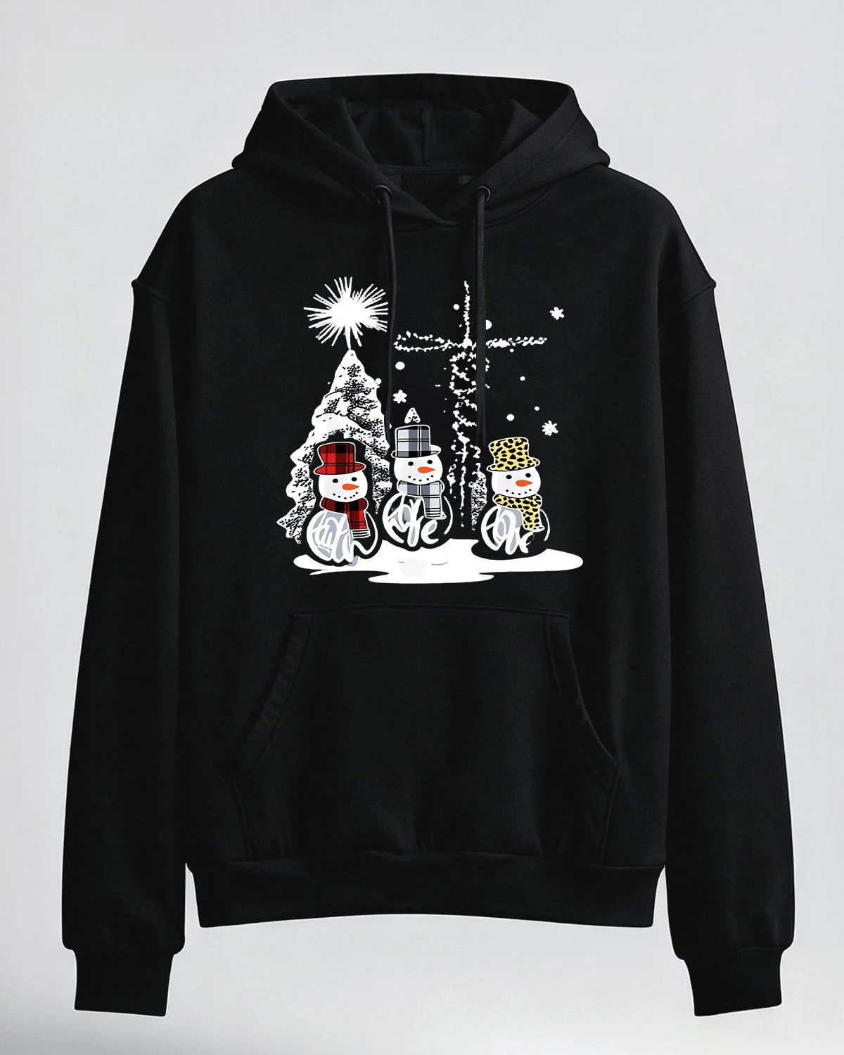 Christmas Snowmen with Festive Scarves Cozy Graphic Hoodie for Men and Women - Casual Vintage, Long Sleeve, Soft Fabric, Comfortable Fit