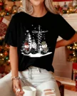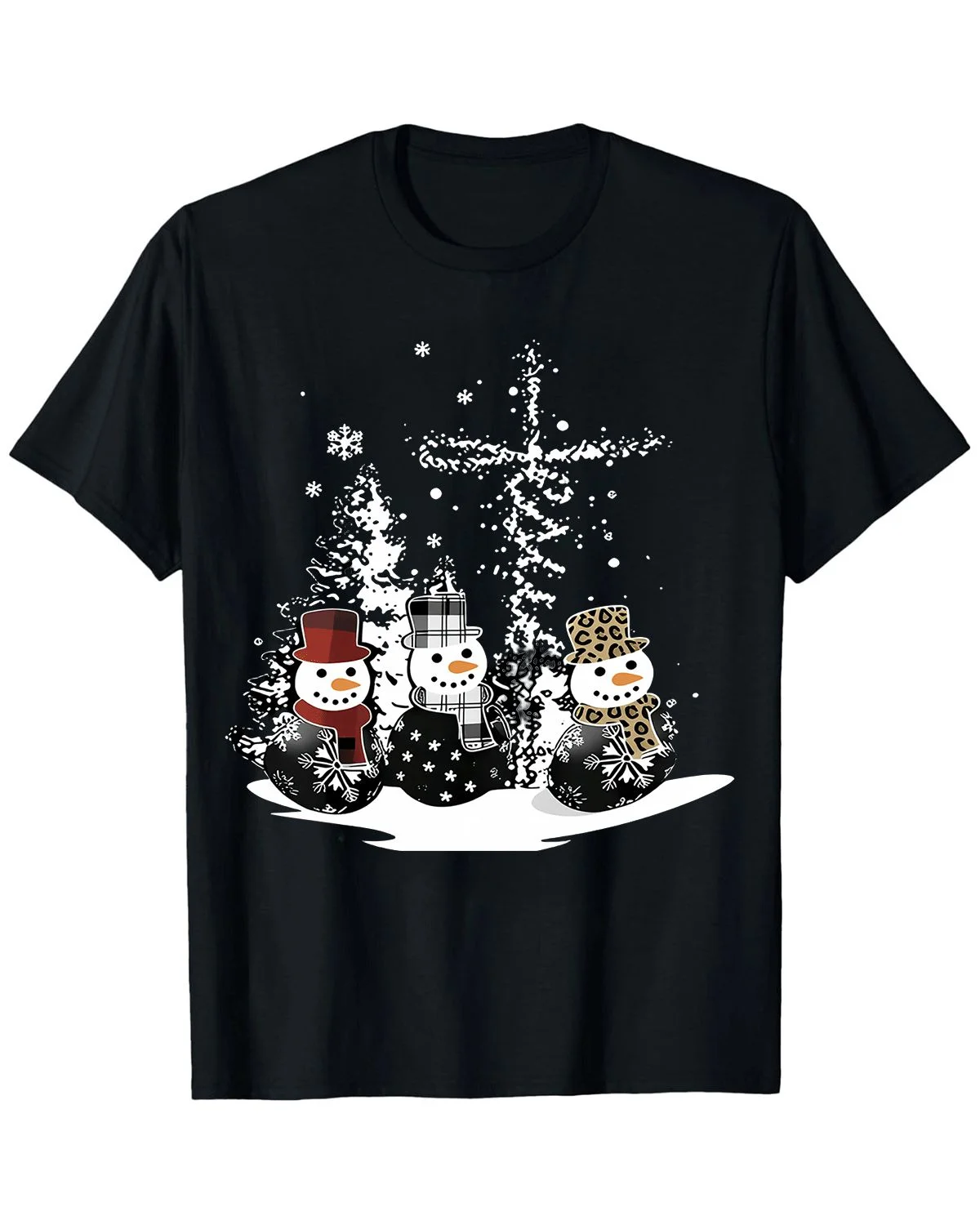 Christmas Snowmen with Winter Trees Summer Cotton Graphic T Shirt - Casual Vintage, Short Sleeve, Soft Fabric, Comfortable Fit