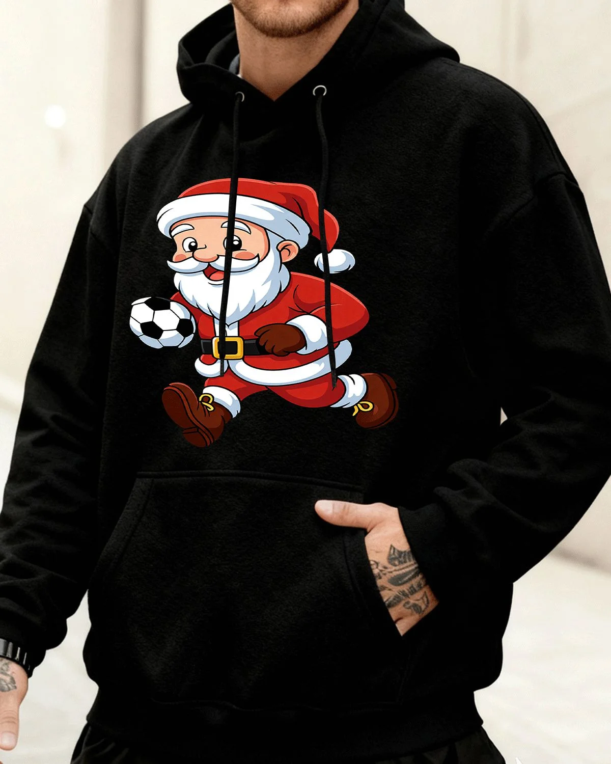 Christmas Soccer Santa Cozy Graphic Hoodie for Men and Women - Casual Sporty, Long Sleeve, Soft Fabric, Comfortable Fit