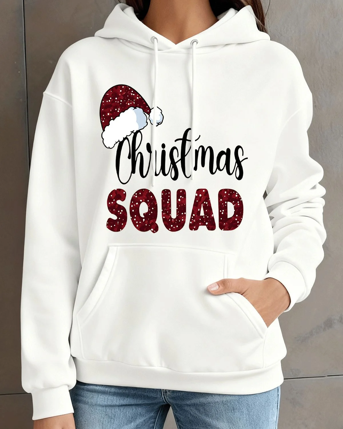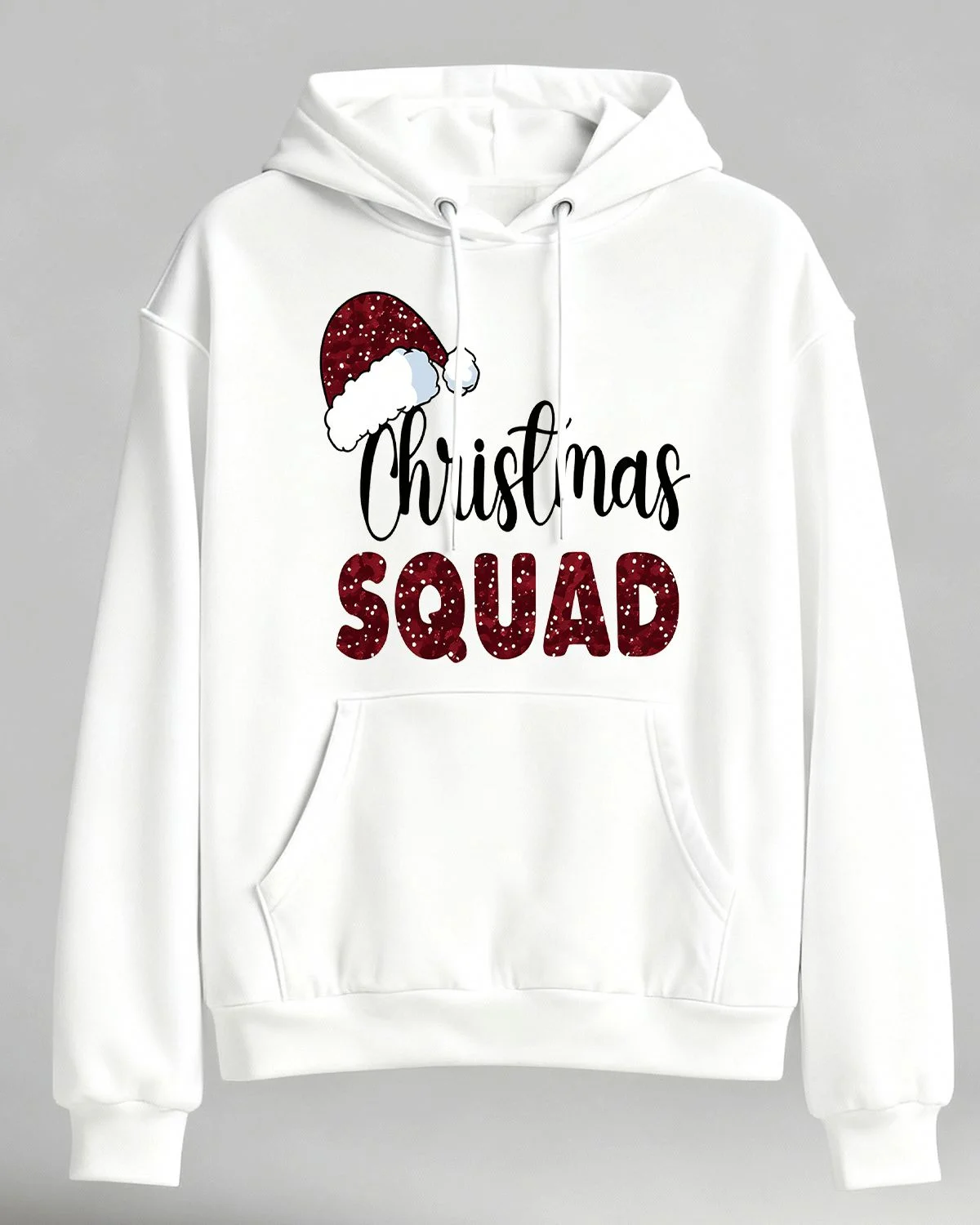 Christmas Squad Santa Hat Cozy Graphic Hoodie for Men and Women - Casual Funny, Long Sleeve, Soft Fabric, Comfortable Fit