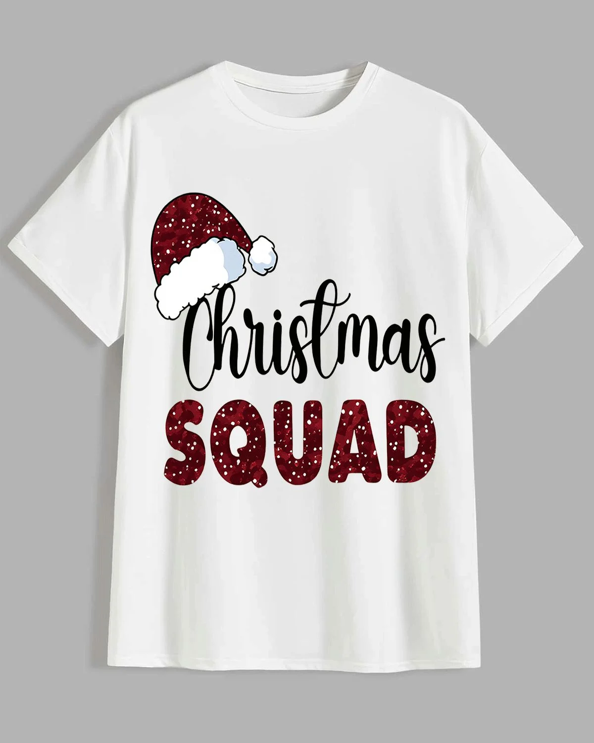 Christmas Squad Santa Hat Summer Cotton Graphic T Shirt - Casual Funny, Short Sleeve, Soft Fabric, Comfortable Fit