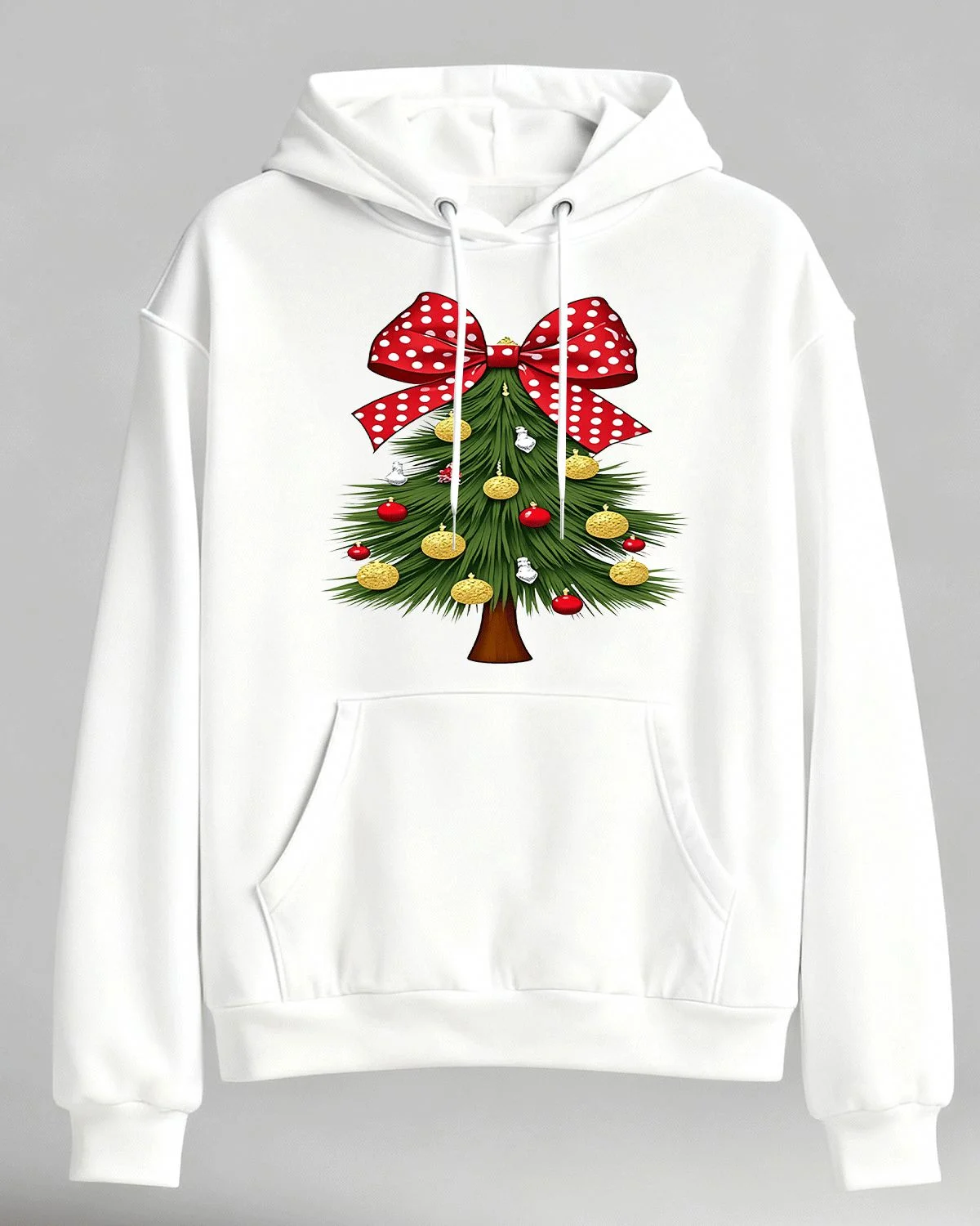 Christmas Tree with Polka Dot Bow Summer Cozy Graphic Hoodie - Casual Vintage, Long Sleeve, Soft Fabric, Comfortable Fit