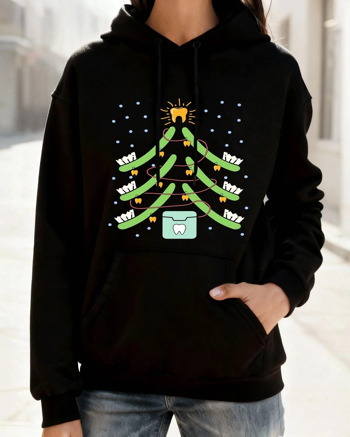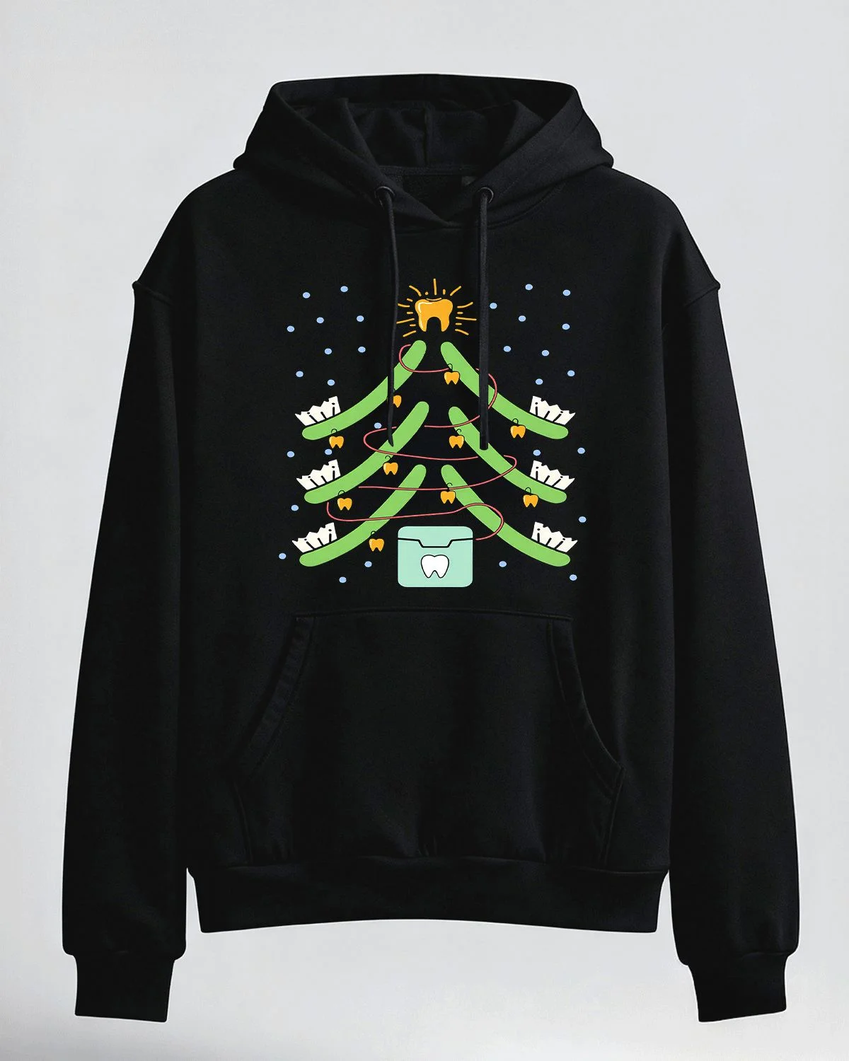 Christmas Tree with Teeth and Floss Summer Cozy Graphic Hoodie-Funny Artistic,Long Sleeve,Soft Fabric,Comfortable Fit