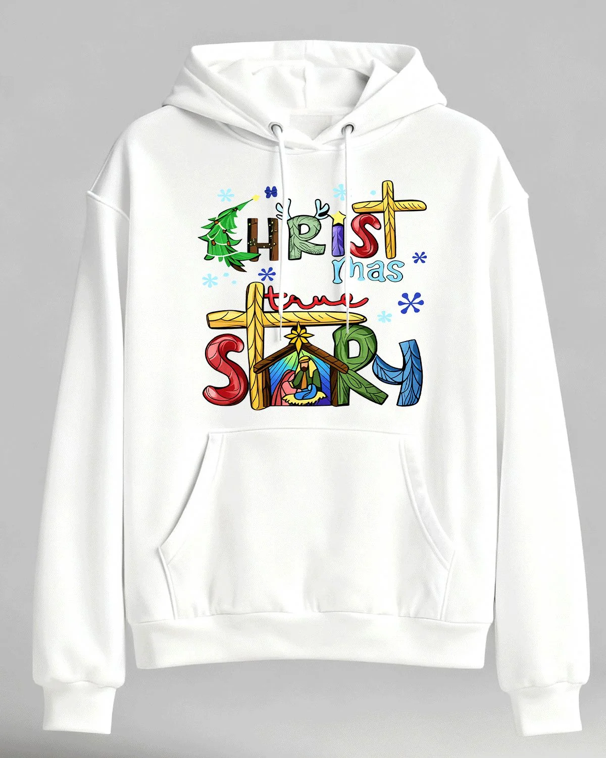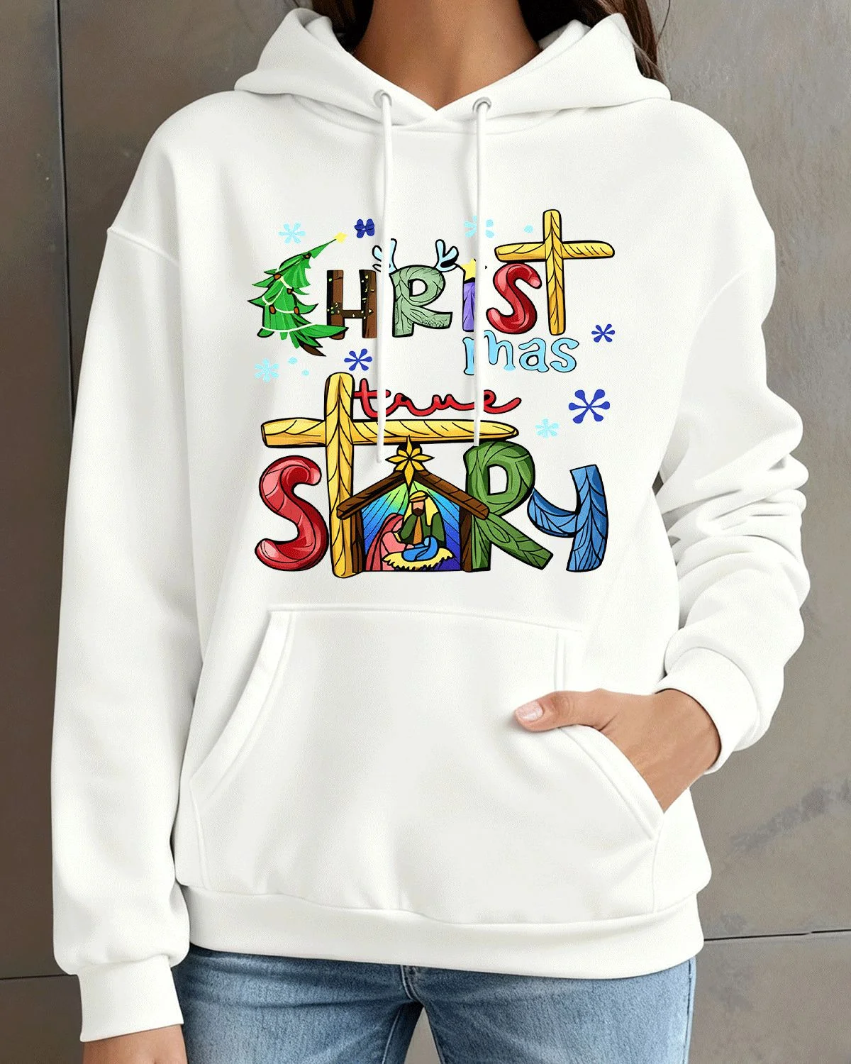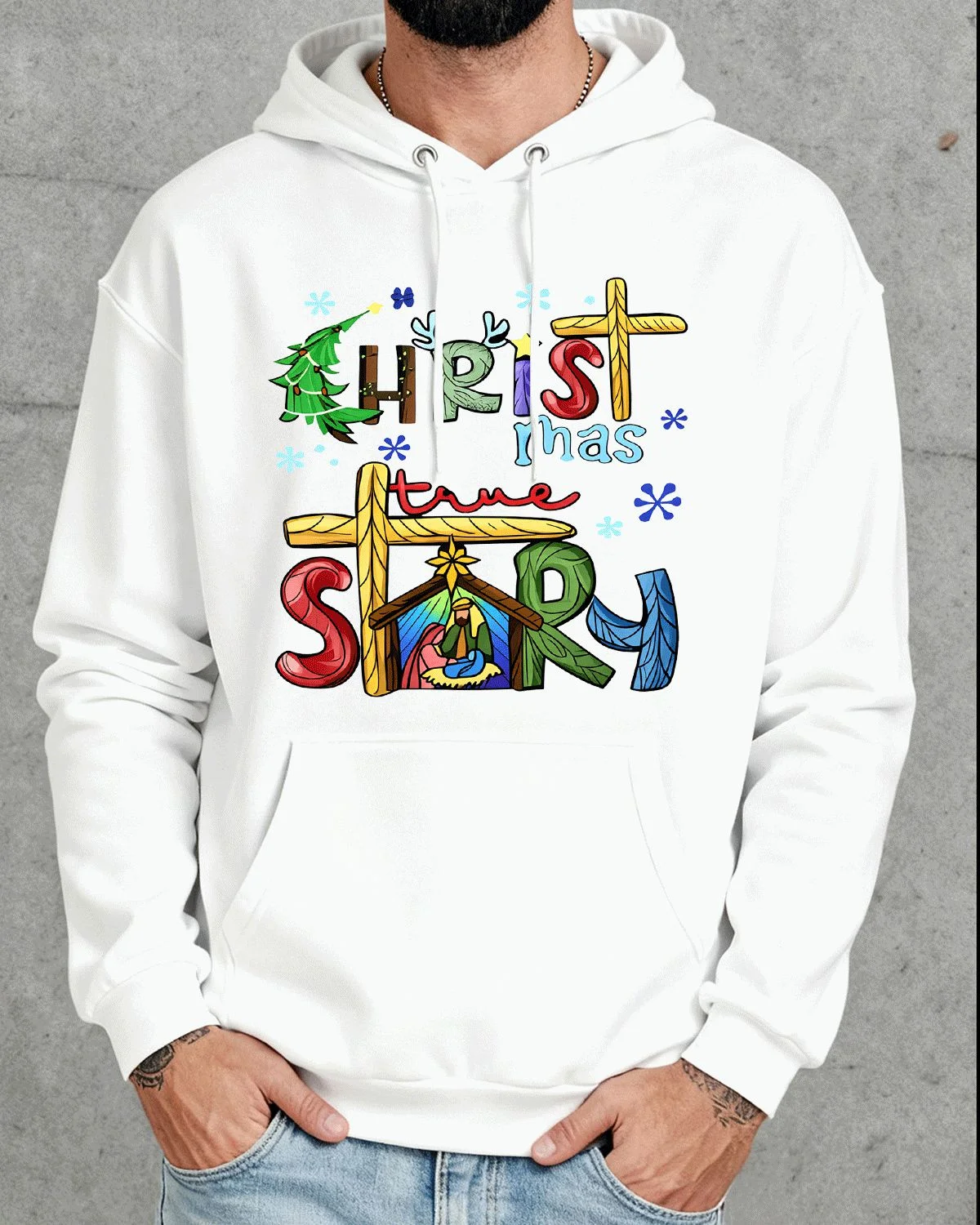 Christmas True Story Nativity Scene Cozy Graphic Hoodie for Men and Women - Casual Vintage, Long Sleeve, Soft Fabric, Comfortable Fit