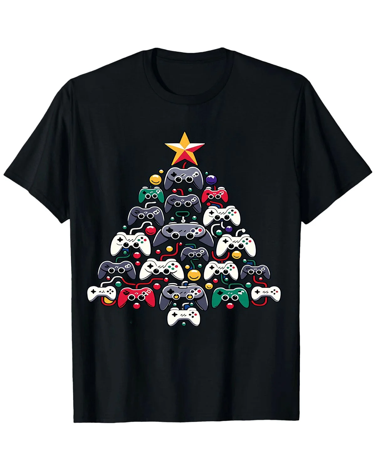Christmas Video Game Controller Tree Summer Cotton Graphic T Shirt - Casual Cool, Short Sleeve, Soft Fabric, Comfortable Fit