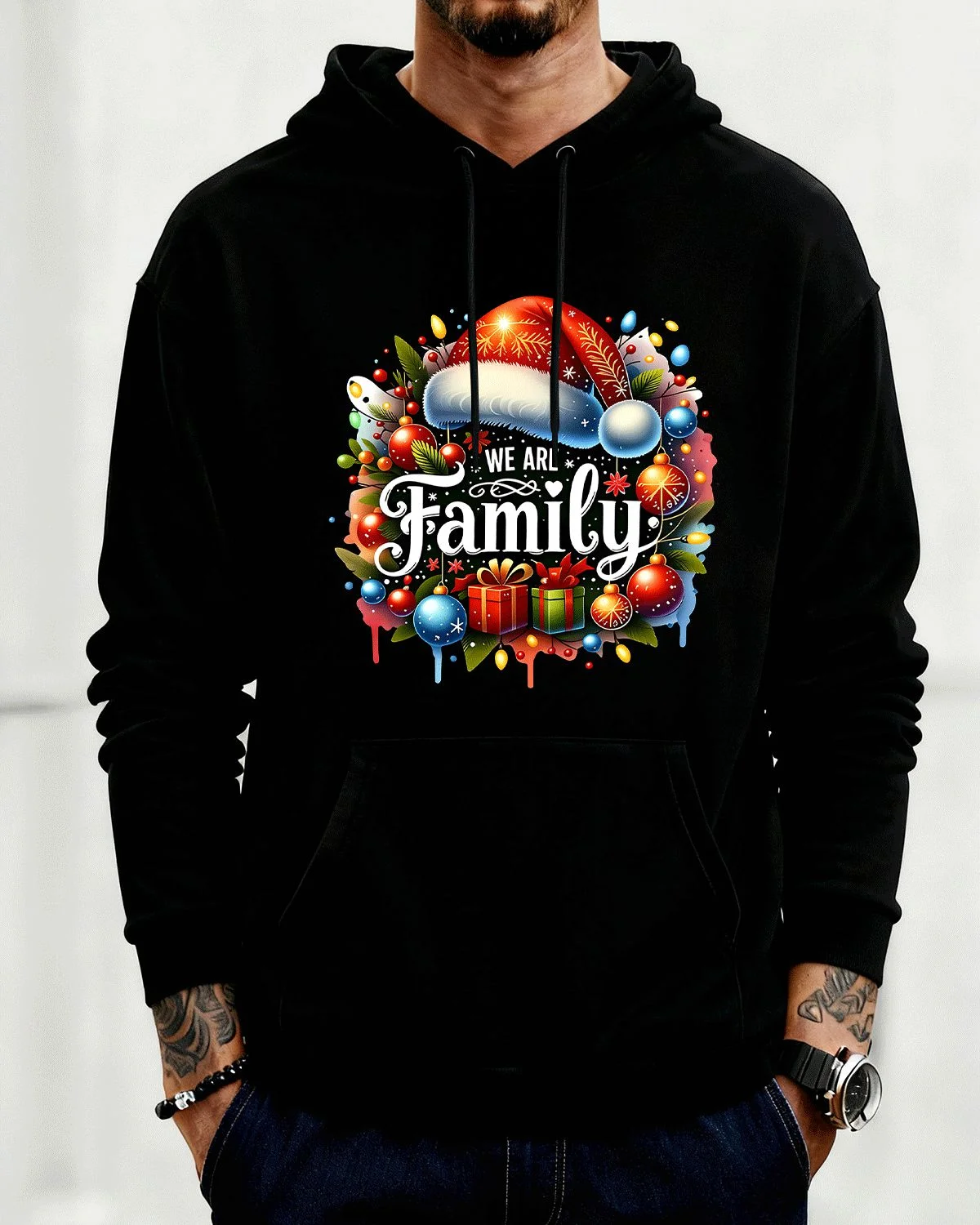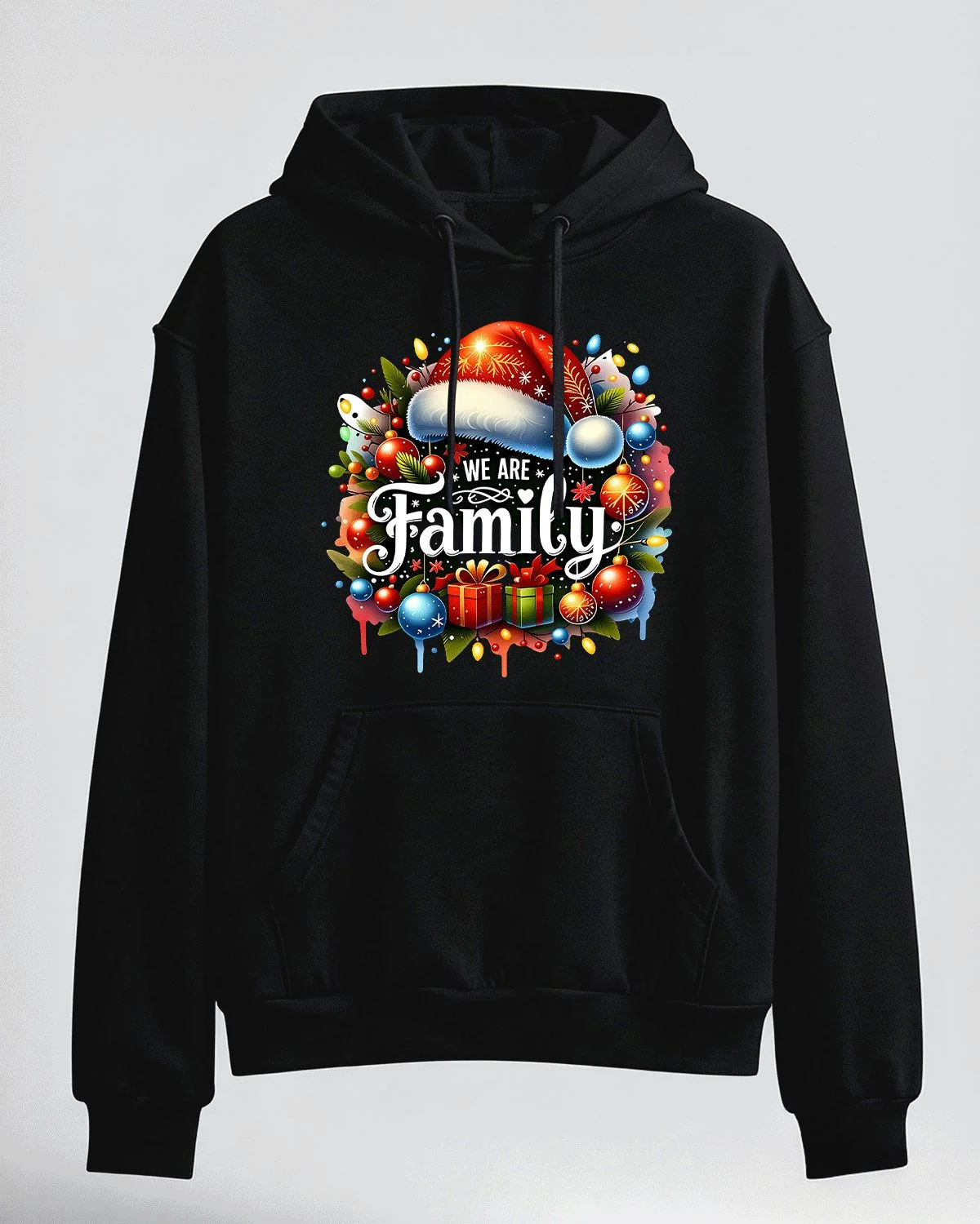 Christmas We Are Family with Santa Hat and Gifts Cozy Graphic Hoodie for Men and Women - Casual Vintage, Long Sleeve, Soft Fabric, Comfortable Fit