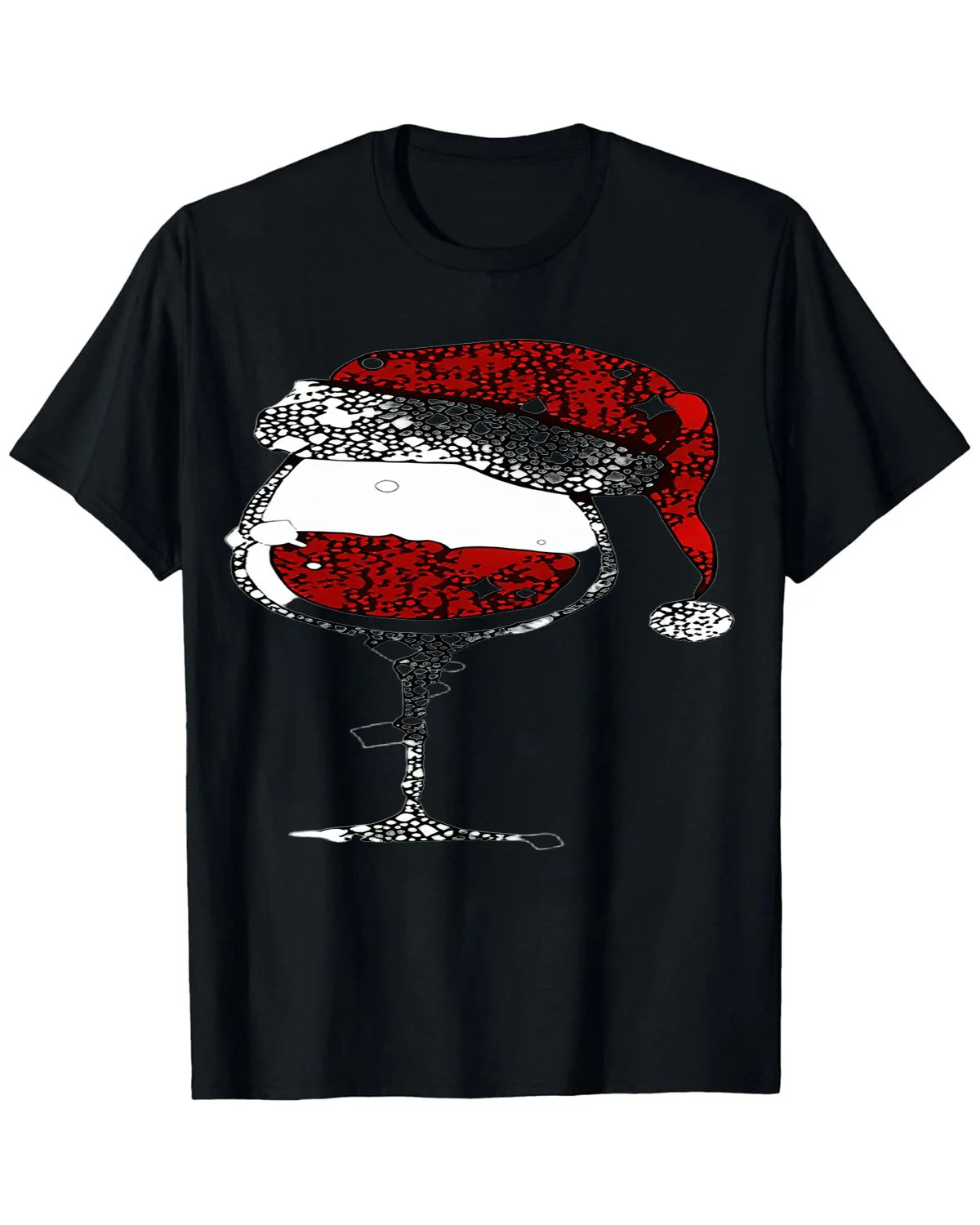Christmas Wine Glass with Santa Hat Summer Cotton Graphic T Shirt - Casual Funny, Short Sleeve, Soft Fabric, Comfortable Fit
