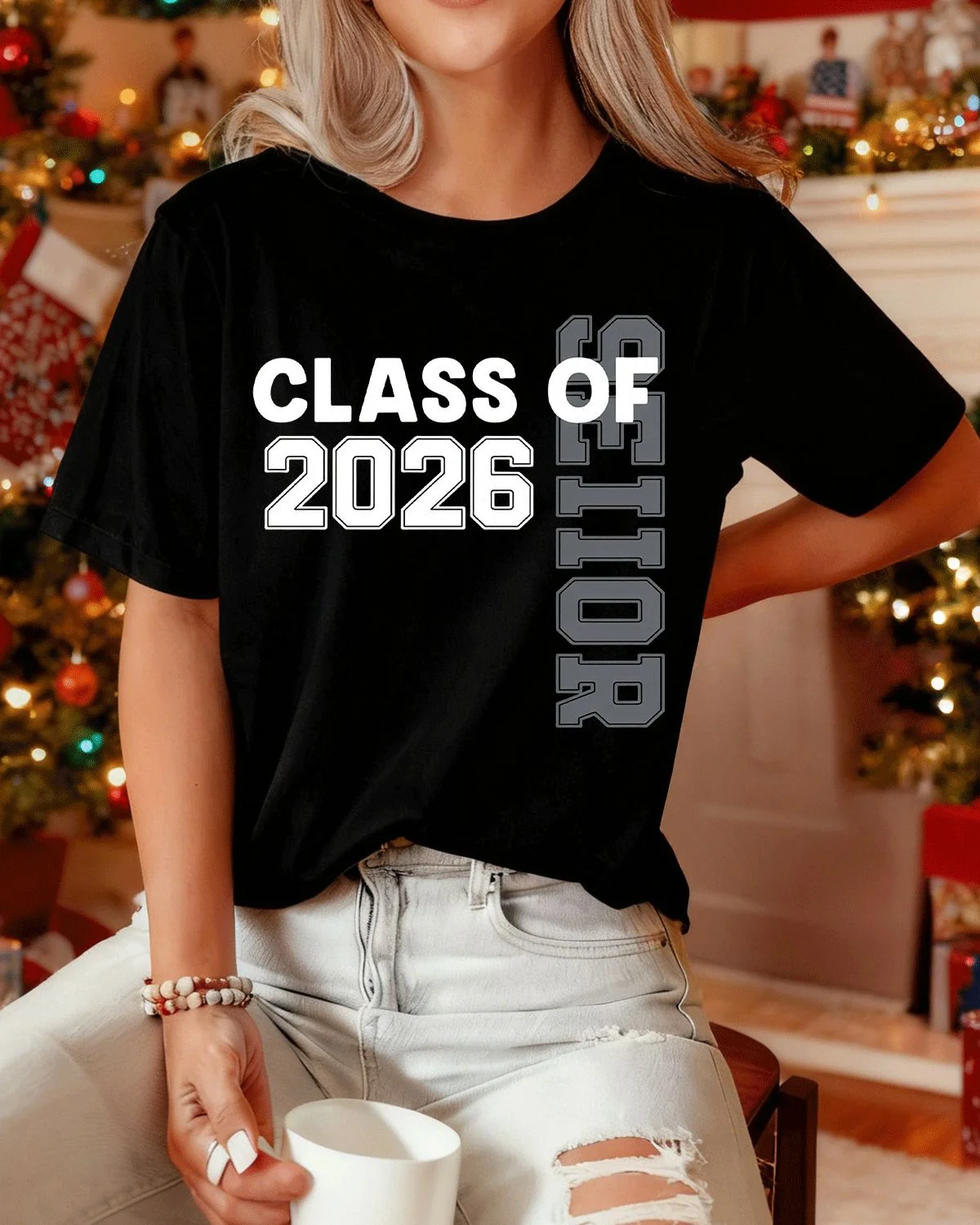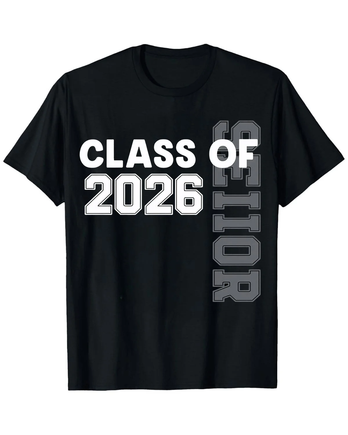 Class of 2026 New Year Senior Summer Cotton Graphic T Shirt - Casual Vintage, Short Sleeve, Soft Fabric, Comfortable Fit