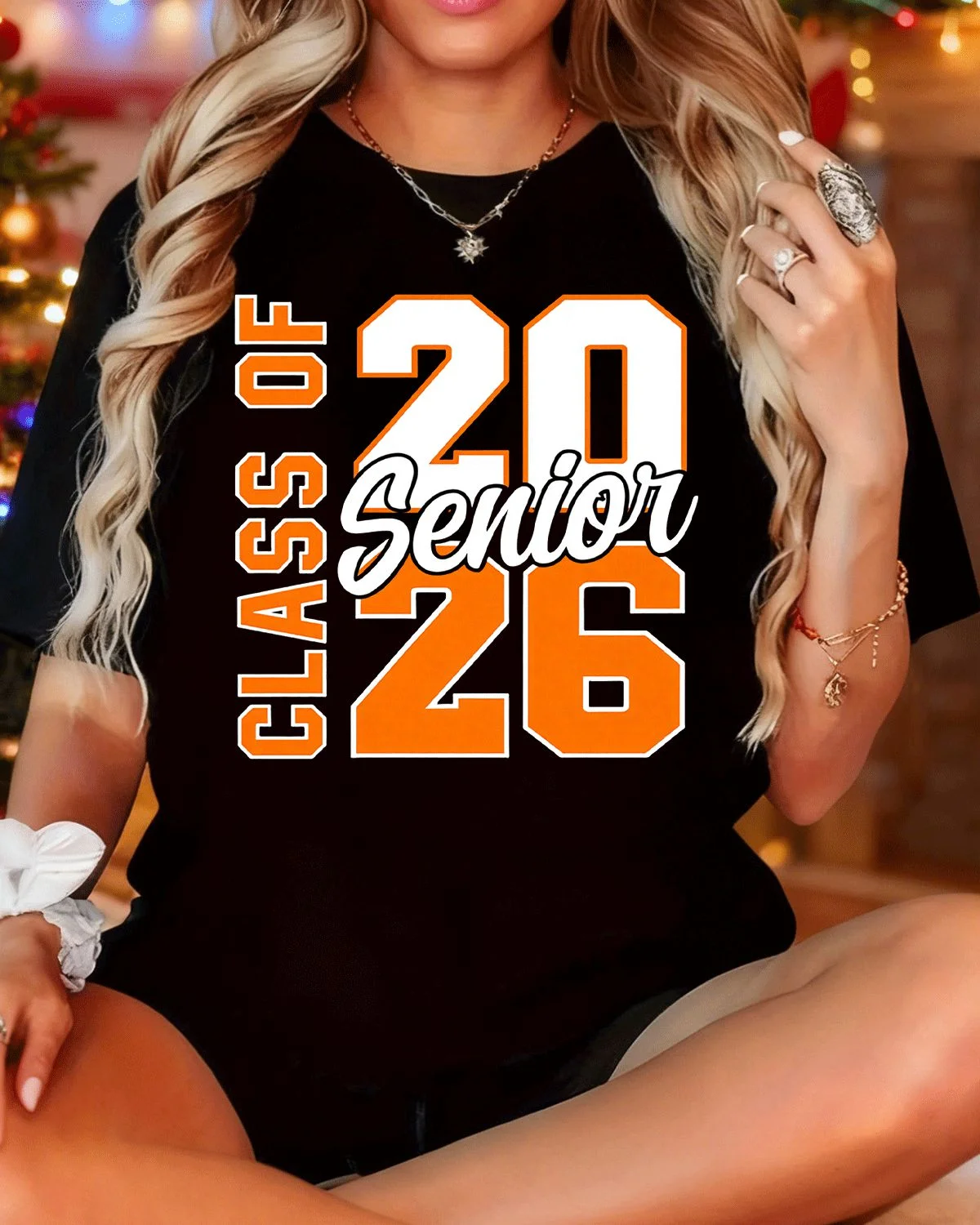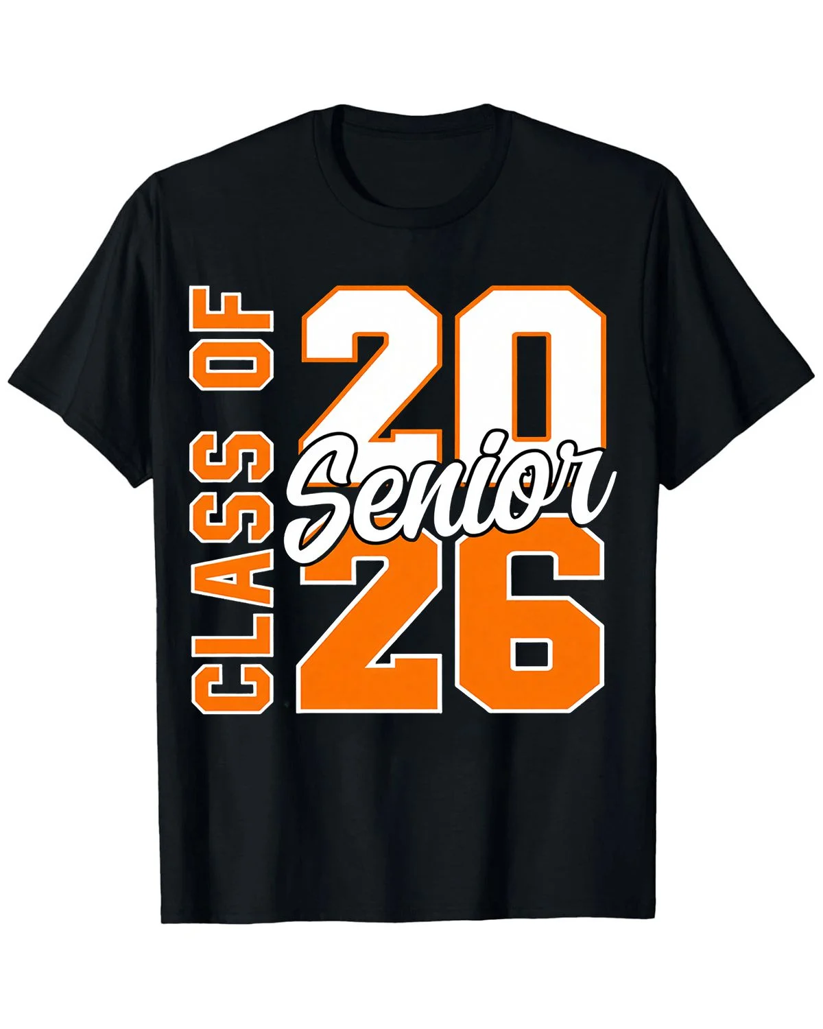 Class of 2026 New Year Senior Summer Cotton Graphic T Shirt - Casual Vintage, Short Sleeve, Soft Fabric, Comfortable Fit