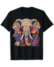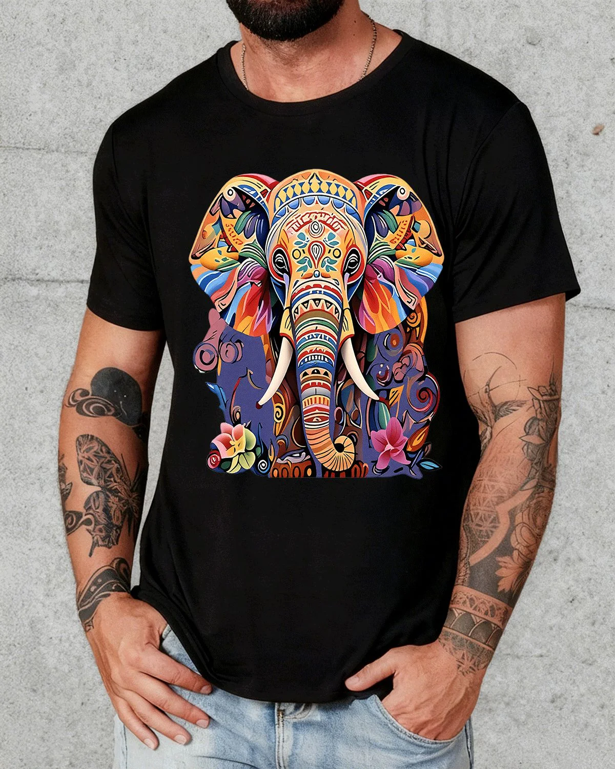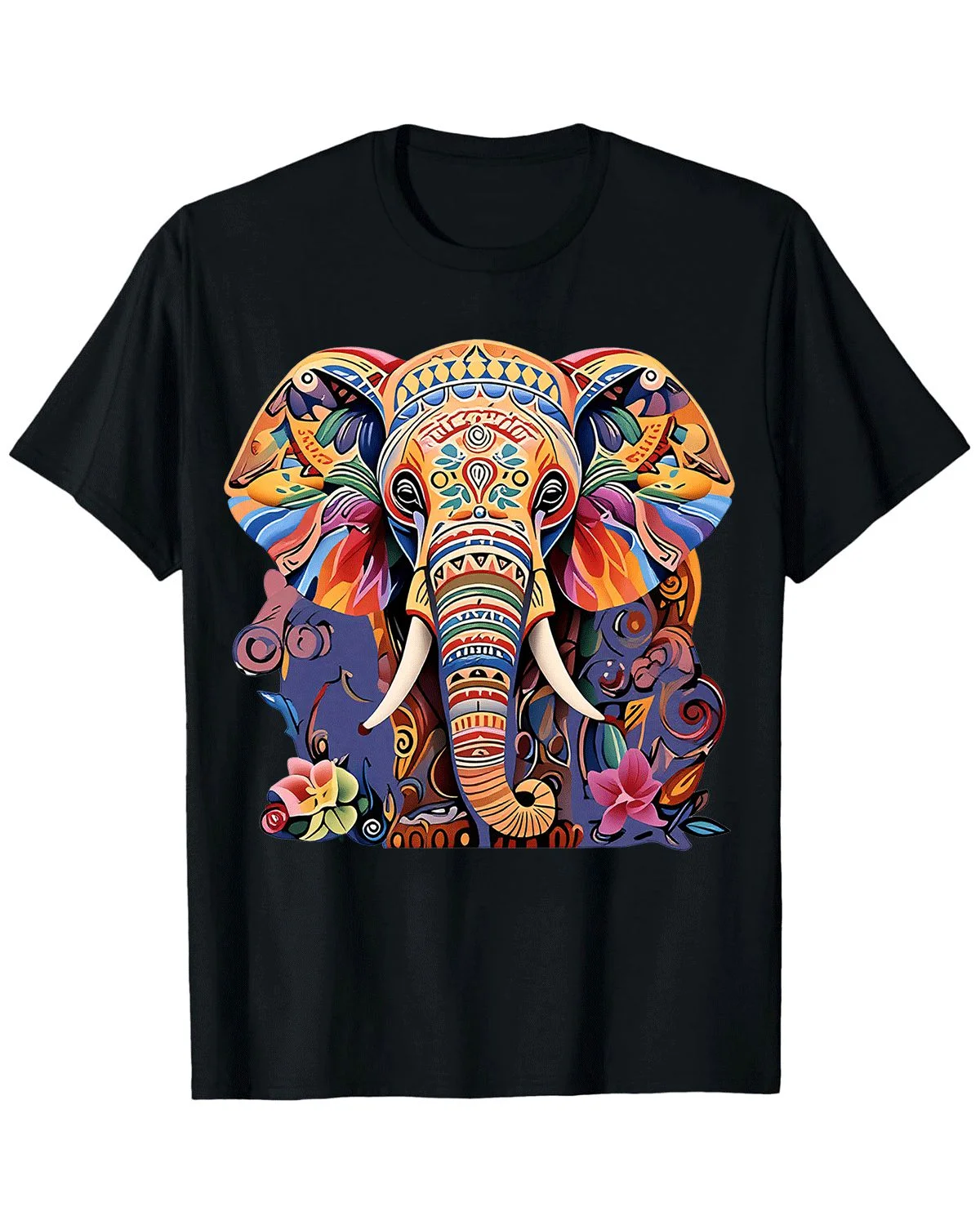 Colorful Artistic Elephant Summer Cotton Graphic T Shirt - Vintage Boho, Short Sleeve, Soft Fabric, Comfortable Fit