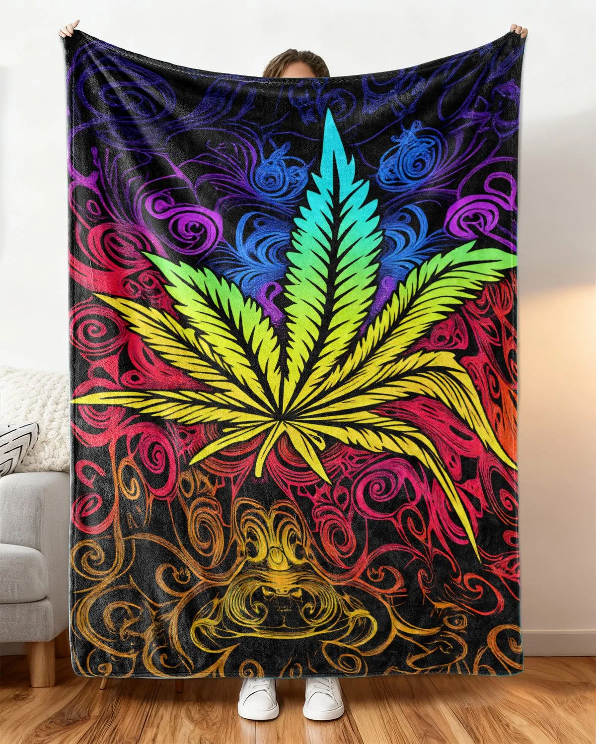 Colorful Artistic Leaf Motivation Gift Cozy Cute Flannel Blanket-Cozy Modern,Plush,Warm,Lightweight,For Couch,Living Room Use