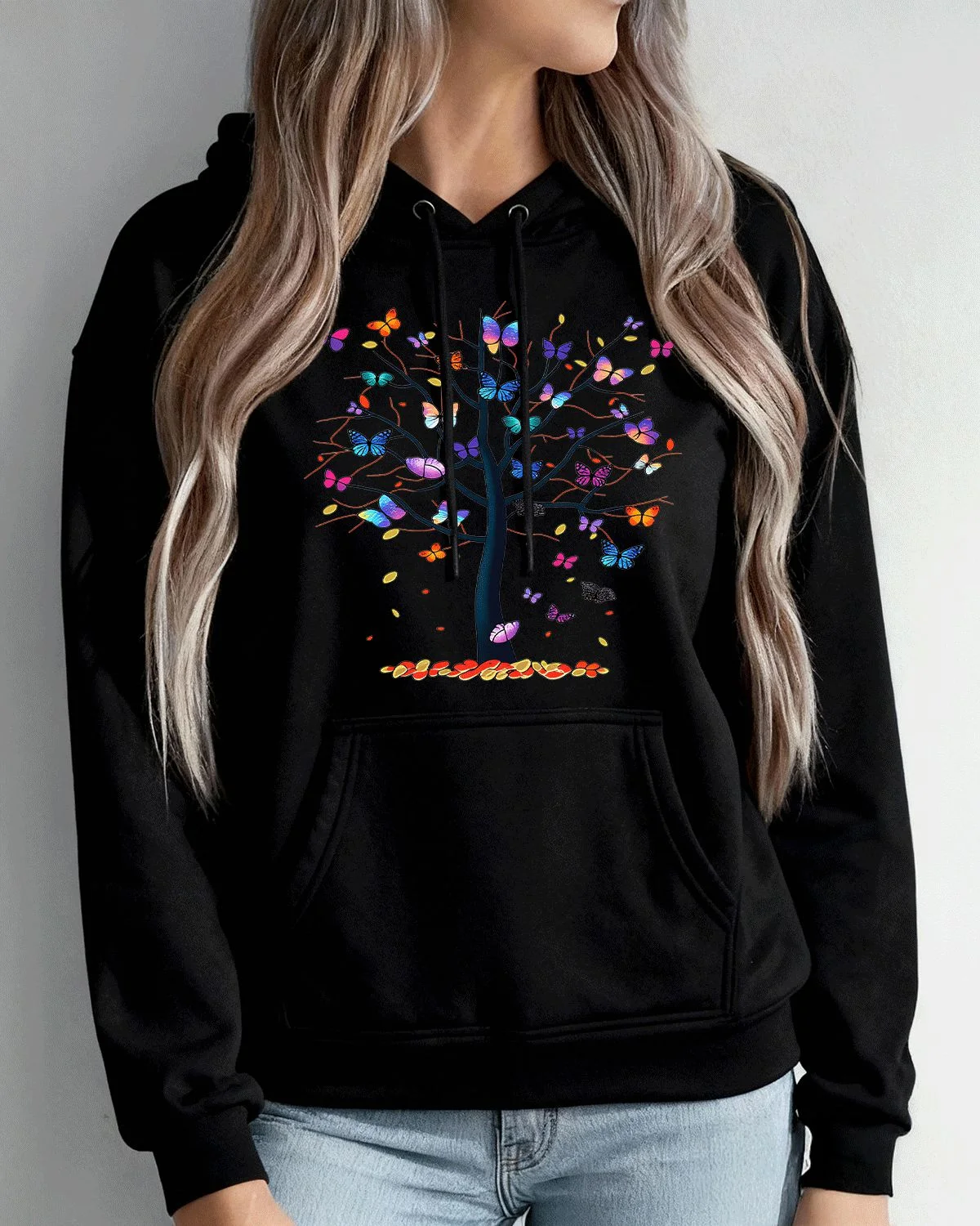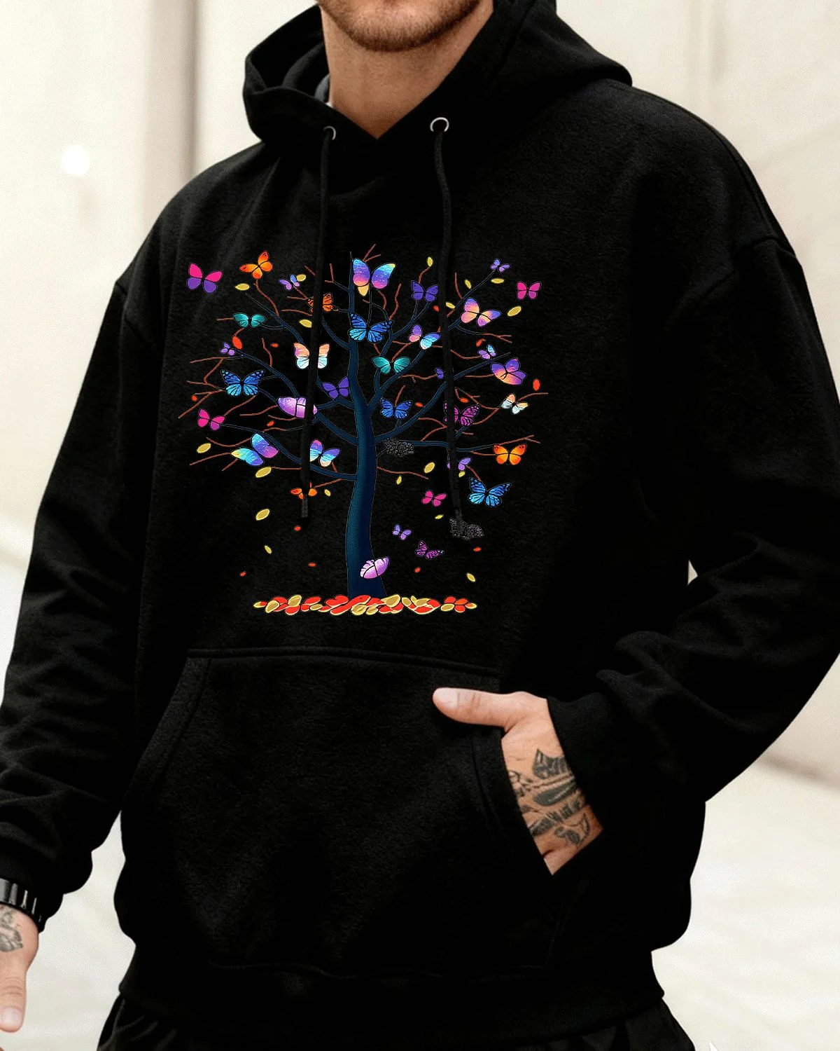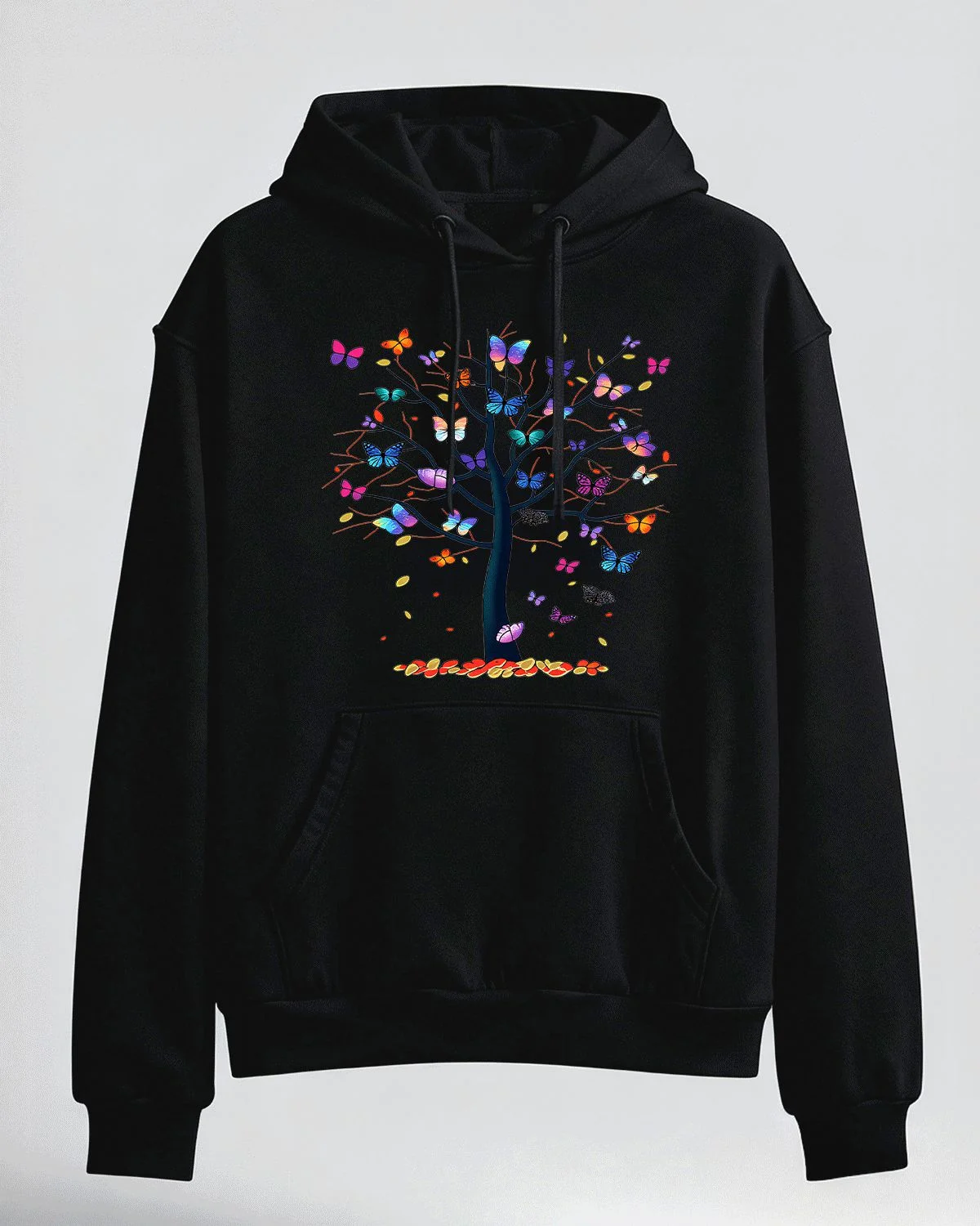 Colorful Butterfly Tree Cozy Graphic Hoodie for Men and Women - Artistic Vintage, Long Sleeve, Soft Fabric, Comfortable Fit