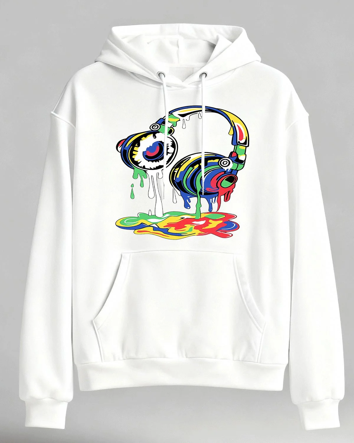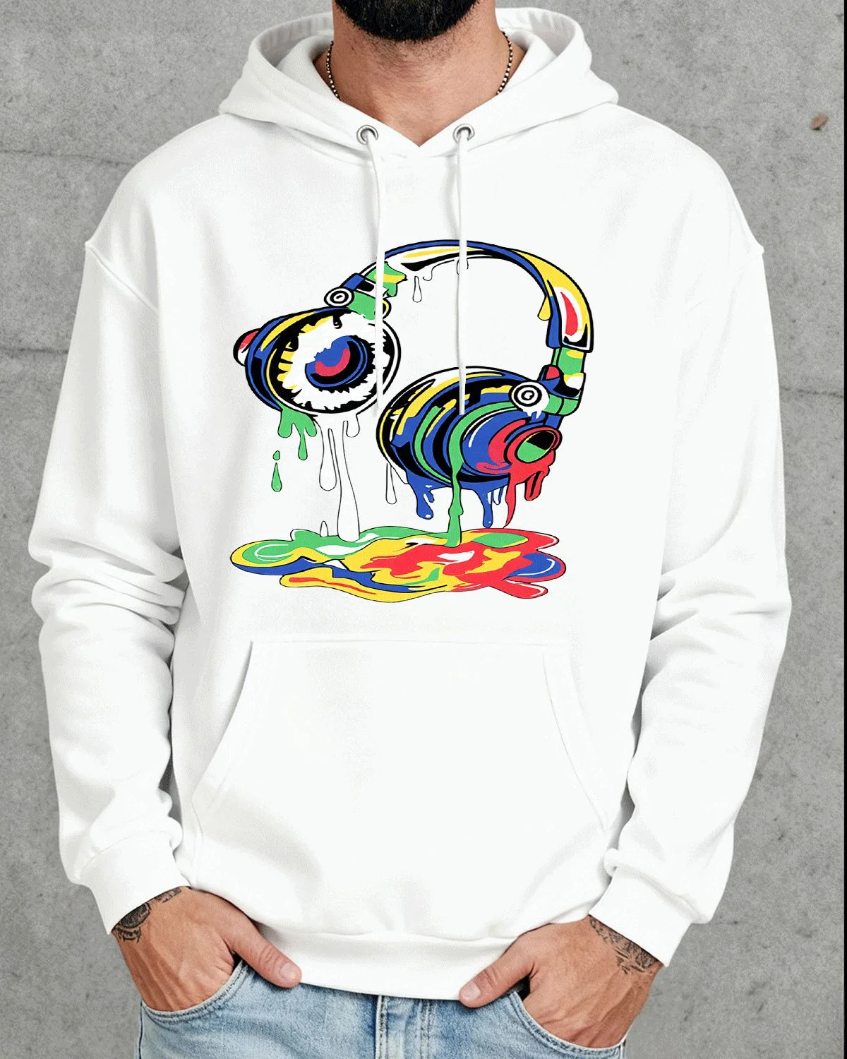 Colorful Dripping Headphones Cozy Graphic Hoodie for Men and Women - Artistic Urban, Long Sleeve, Soft Fabric, Comfortable Fit