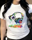 Colorful Dripping Headphones Summer Cotton Graphic T Shirt - Artistic Urban, Short Sleeve, Soft Fabric, Comfortable Fit
