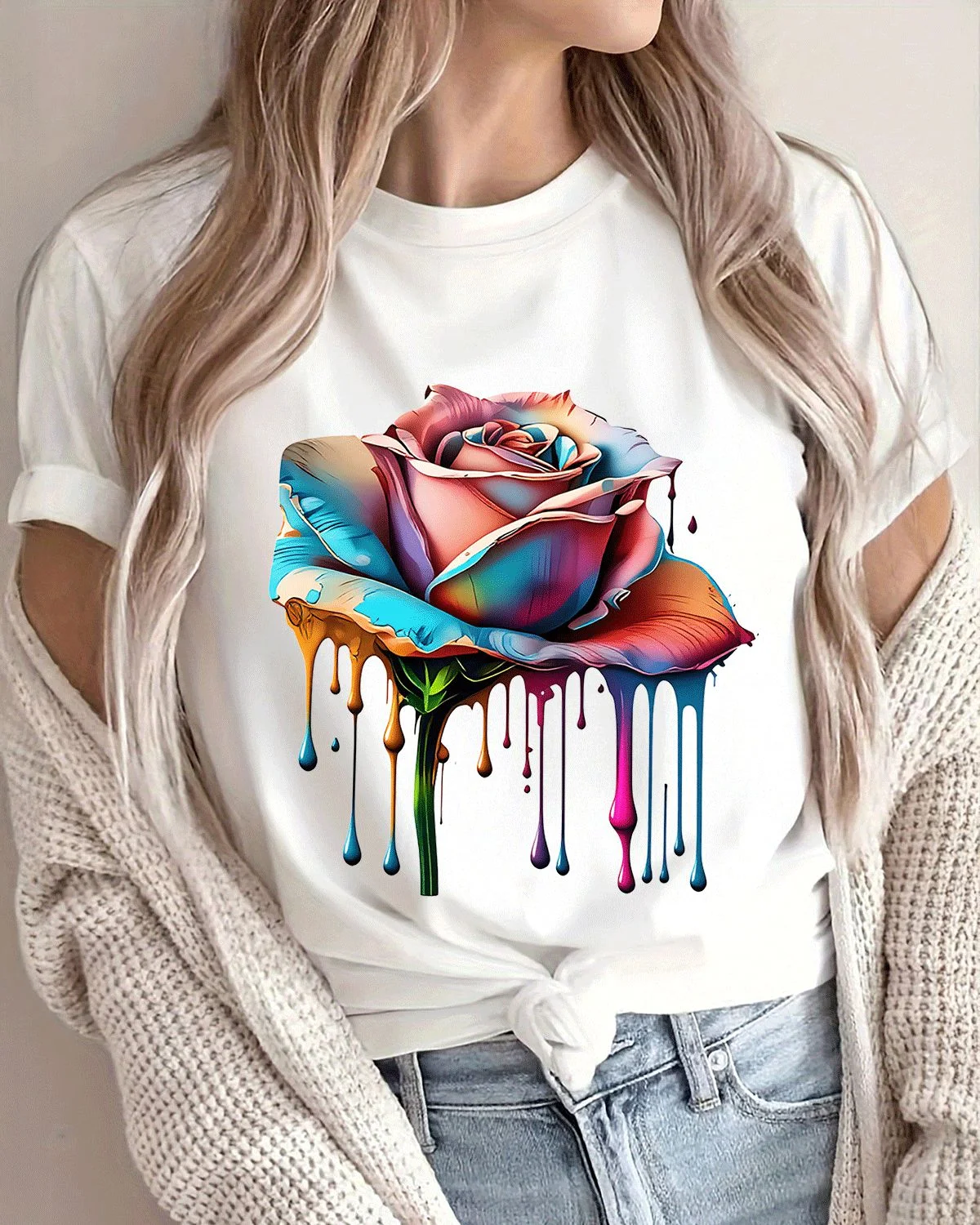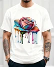 Christmas Chickens and Reindeer in Santa Hats Summer Cotton Graphic T Shirt - Funny Retro, Short Sleeve, Soft Fabric, Comfortable Fit