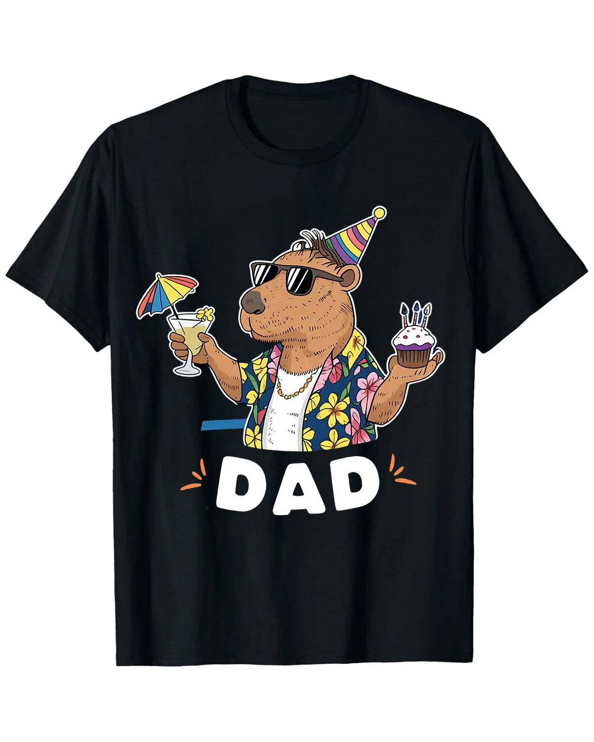 Cool Dad Birthday Party Capybara Summer Cotton Graphic T Shirt - Casual Funny, Short Sleeve, Soft Fabric, Comfortable Fit