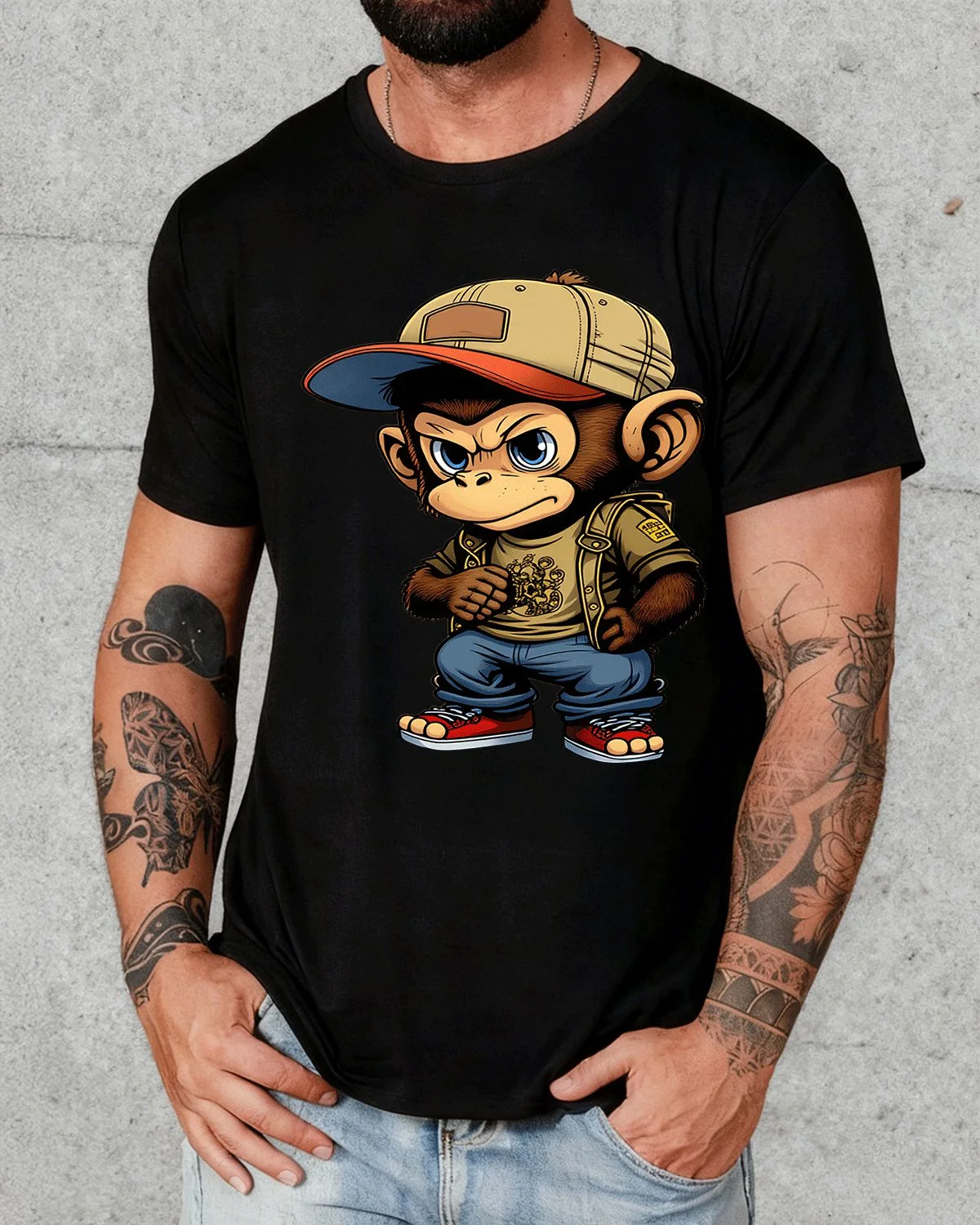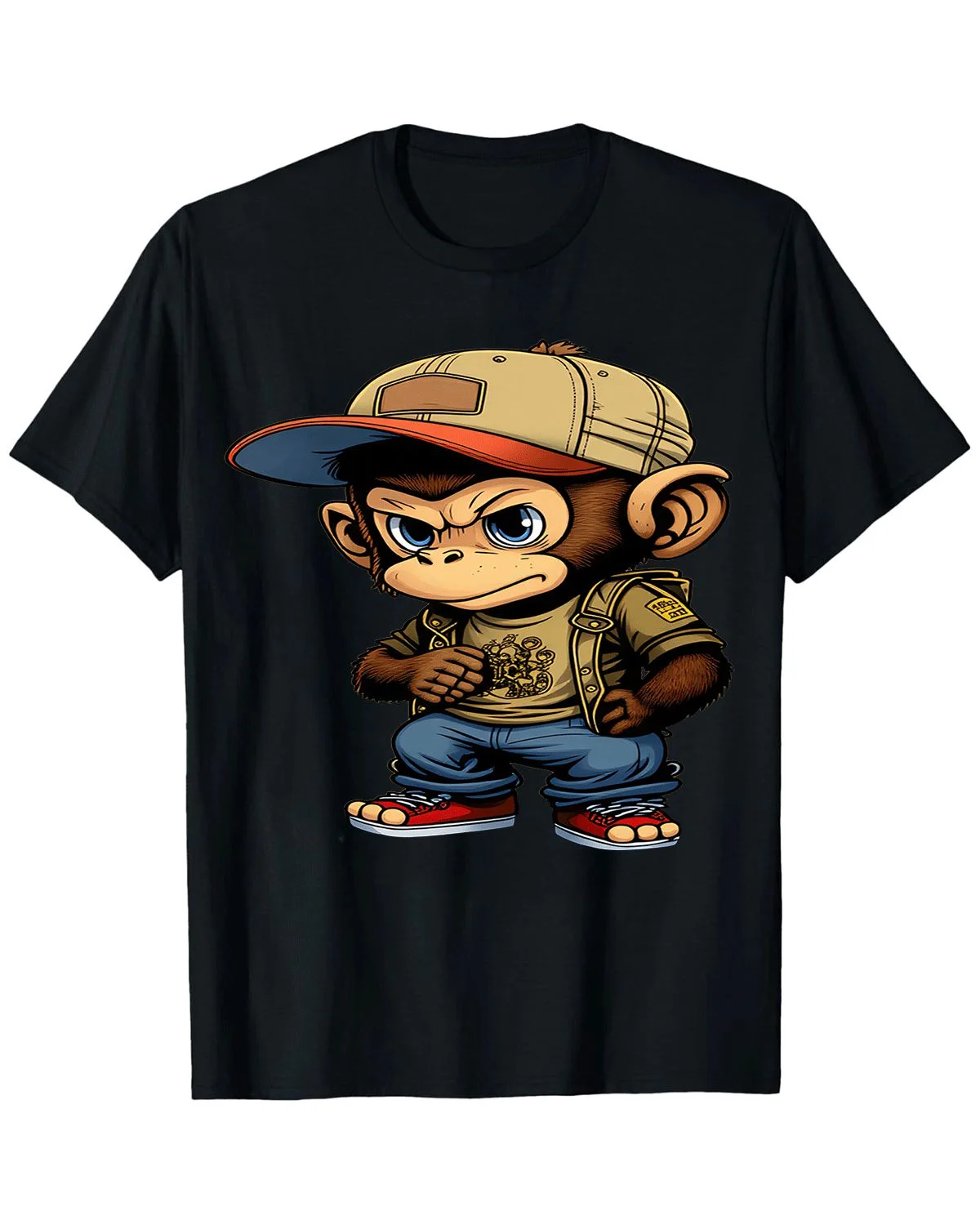 Cool Monkey Streetwear Summer Cotton Graphic T Shirt - Urban Trendy, Short Sleeve, Soft Fabric, Comfortable Fit