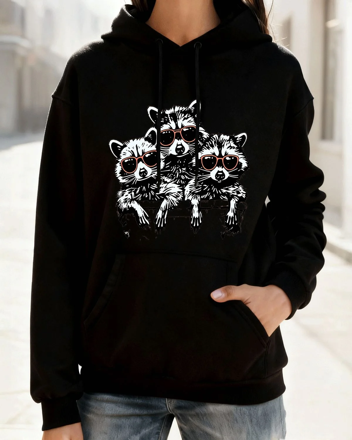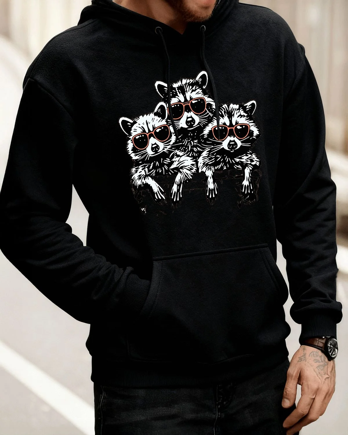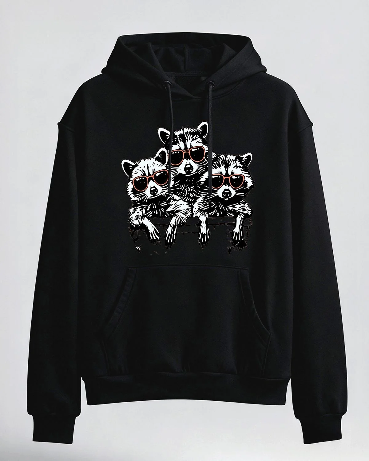 Cool Sunglasses Raccoon Trio Cozy Graphic Hoodie for Men and Women - Casual Funny, Long Sleeve, Soft Fabric, Comfortable Fit