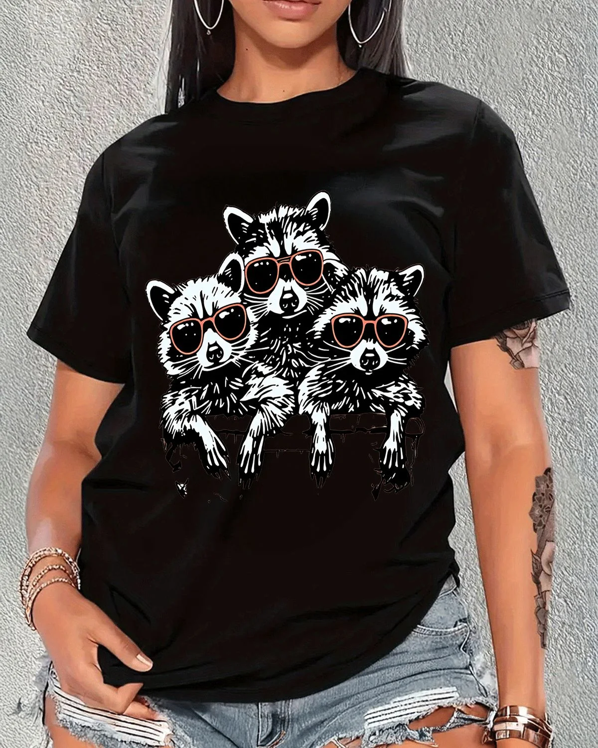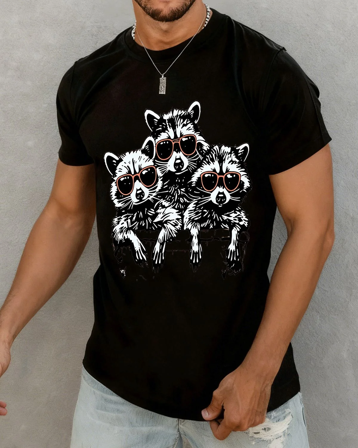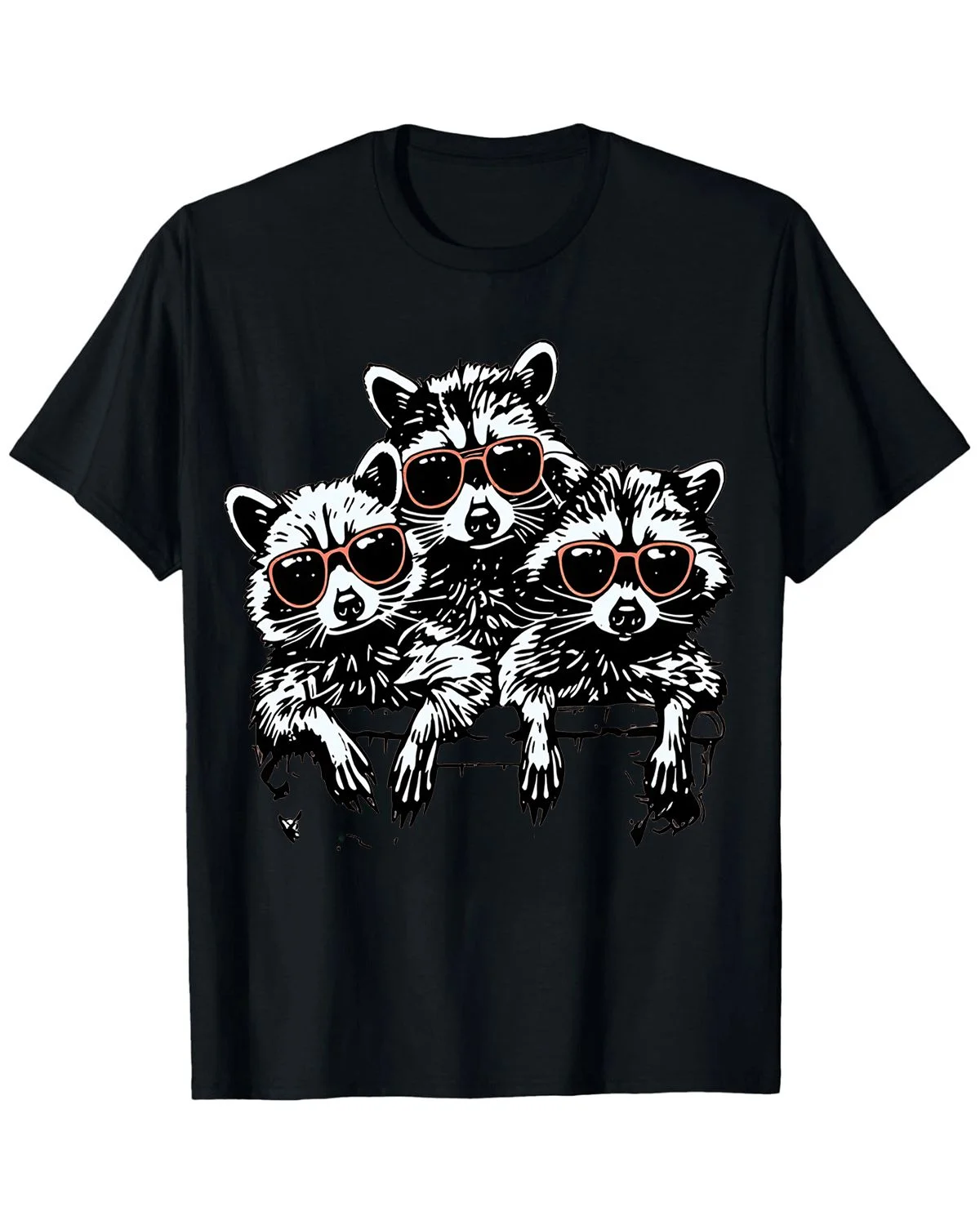 Cool Sunglasses Raccoon Trio Summer Cotton Graphic T Shirt - Casual Funny, Short Sleeve, Soft Fabric, Comfortable Fit