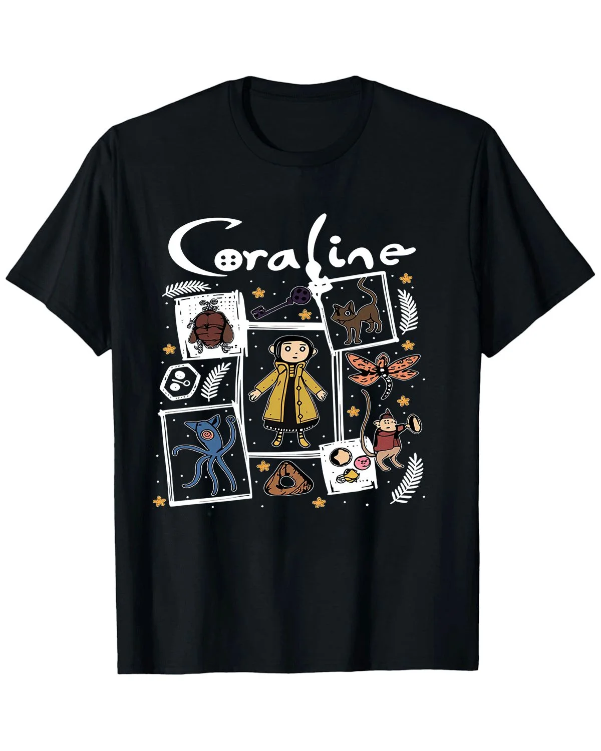Coraline Movie Characters Summer Cotton Graphic T Shirt - Vintage Artistic,Short Sleeve,Soft Fabric,Comfortable Fit