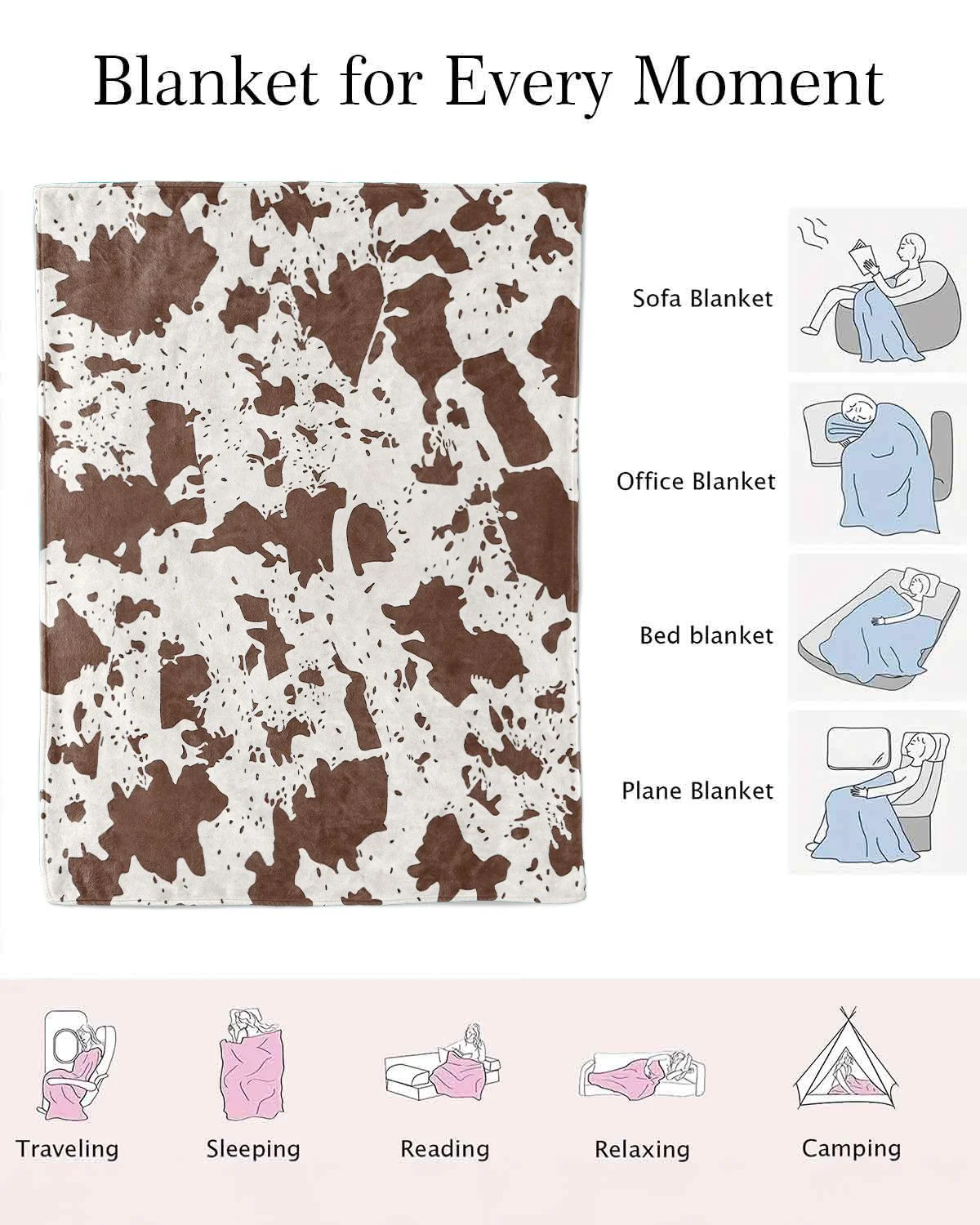 Cow Print Farmhouse Love Gift Cozy Flannel Blanket-Cozy Classic,Warm,Plush,Durable,For Couch,Bedroom Use