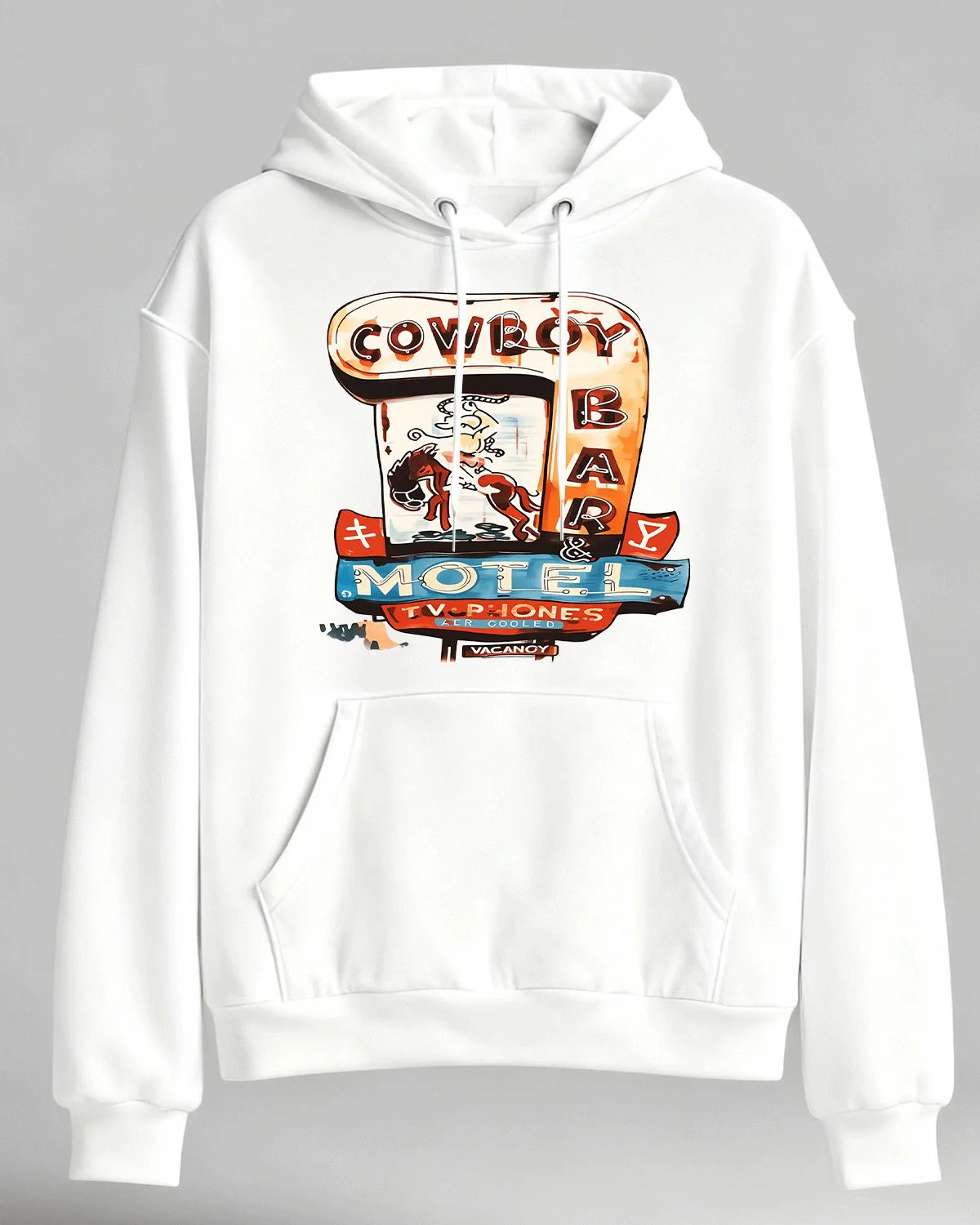 Cowboy Bar and Motel Cozy Graphic Hoodie for Men and Women - Vintage Retro, Long Sleeve, Soft Fabric, Comfortable Fit