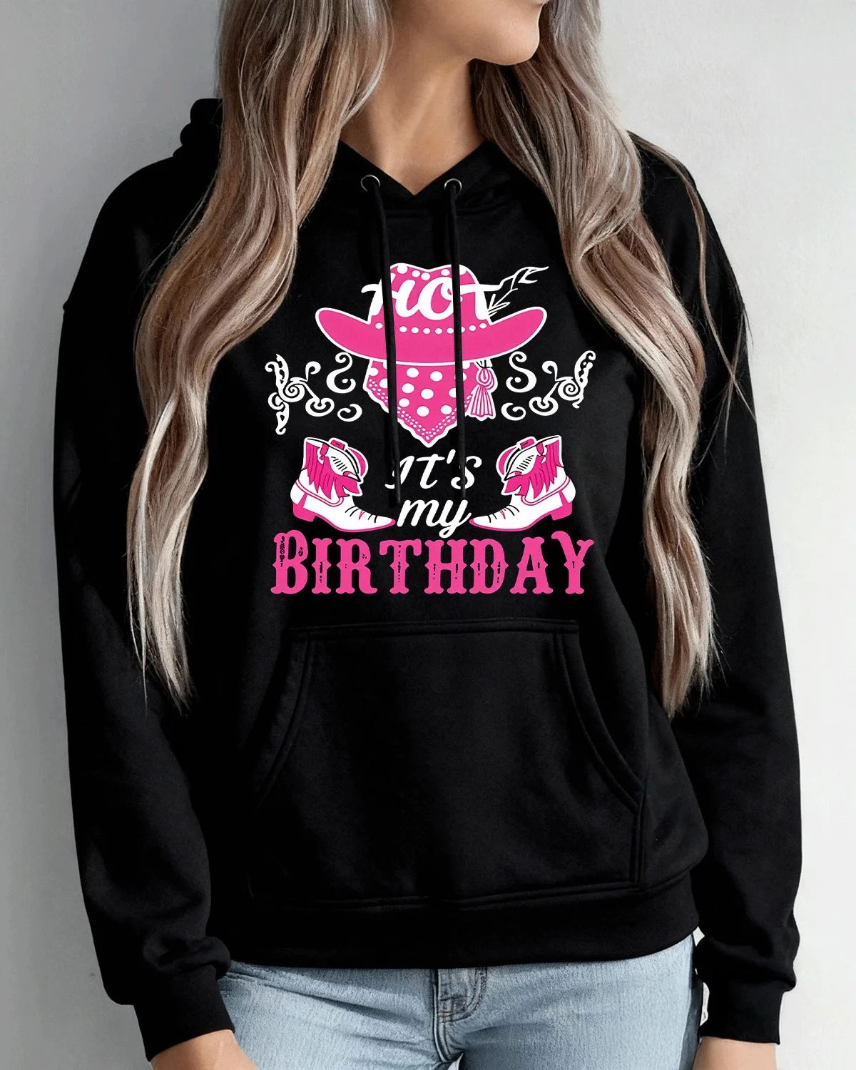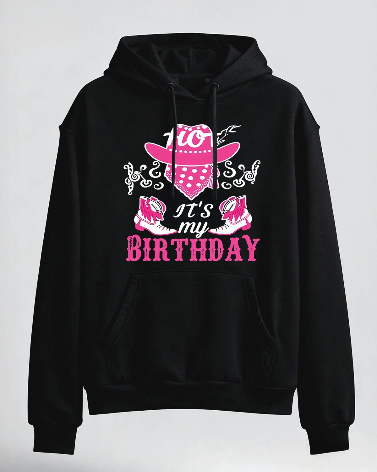 Cowgirl Hat Boots It's My Birthday Cozy Graphic Hoodie for Men and Women - Casual Vintage, Long Sleeve, Soft Fabric, Comfortable Fit