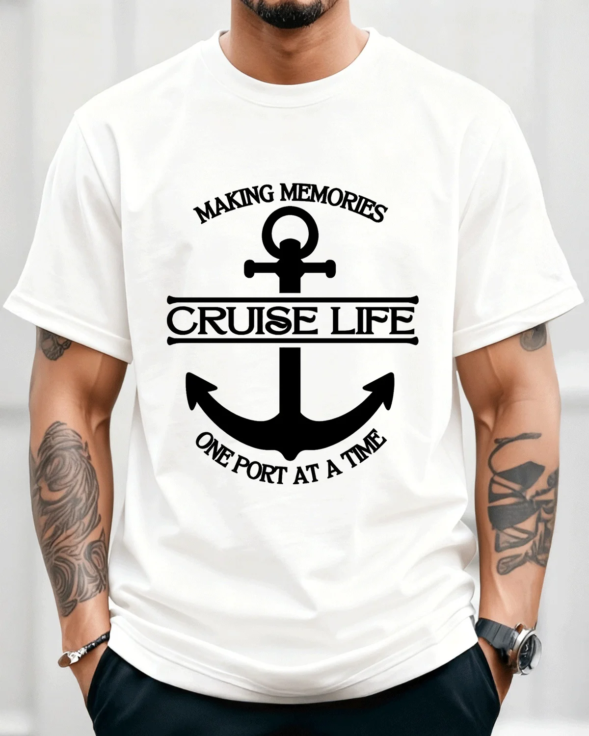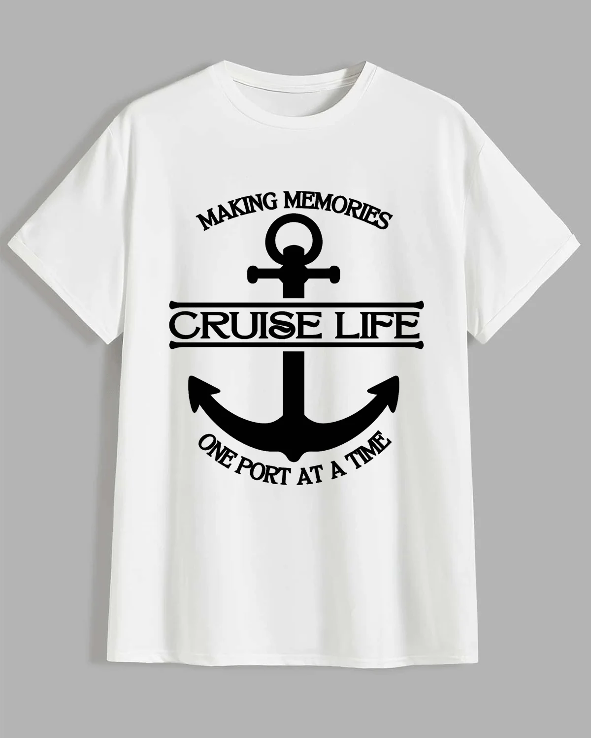 Cruise Life Making Memories One Port at a Time Summer Cotton Graphic T Shirt-Casual Vintage,Short Sleeve,Soft Fabric,Comfortable Fit