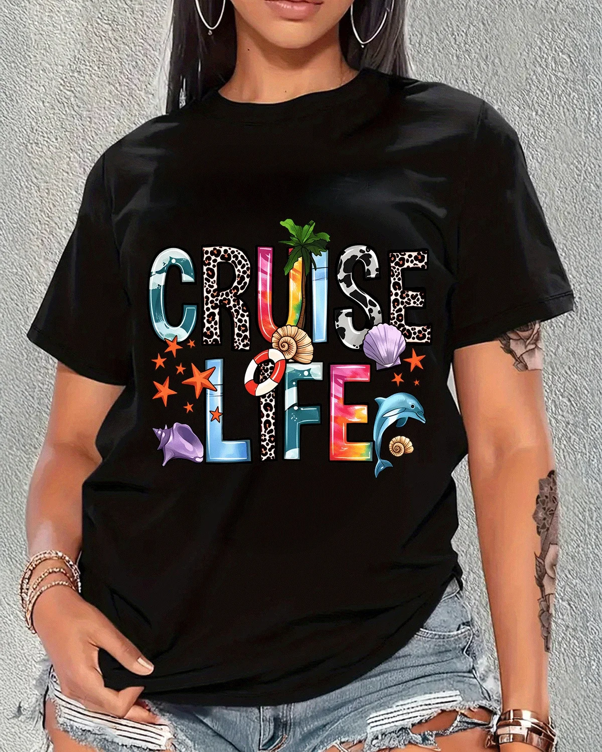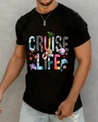 Aloha Good Vibes Palm Tree Summer Cotton Graphic T Shirt-Casual Vintage,Short Sleeve,Soft Fabric,Comfortable Fit