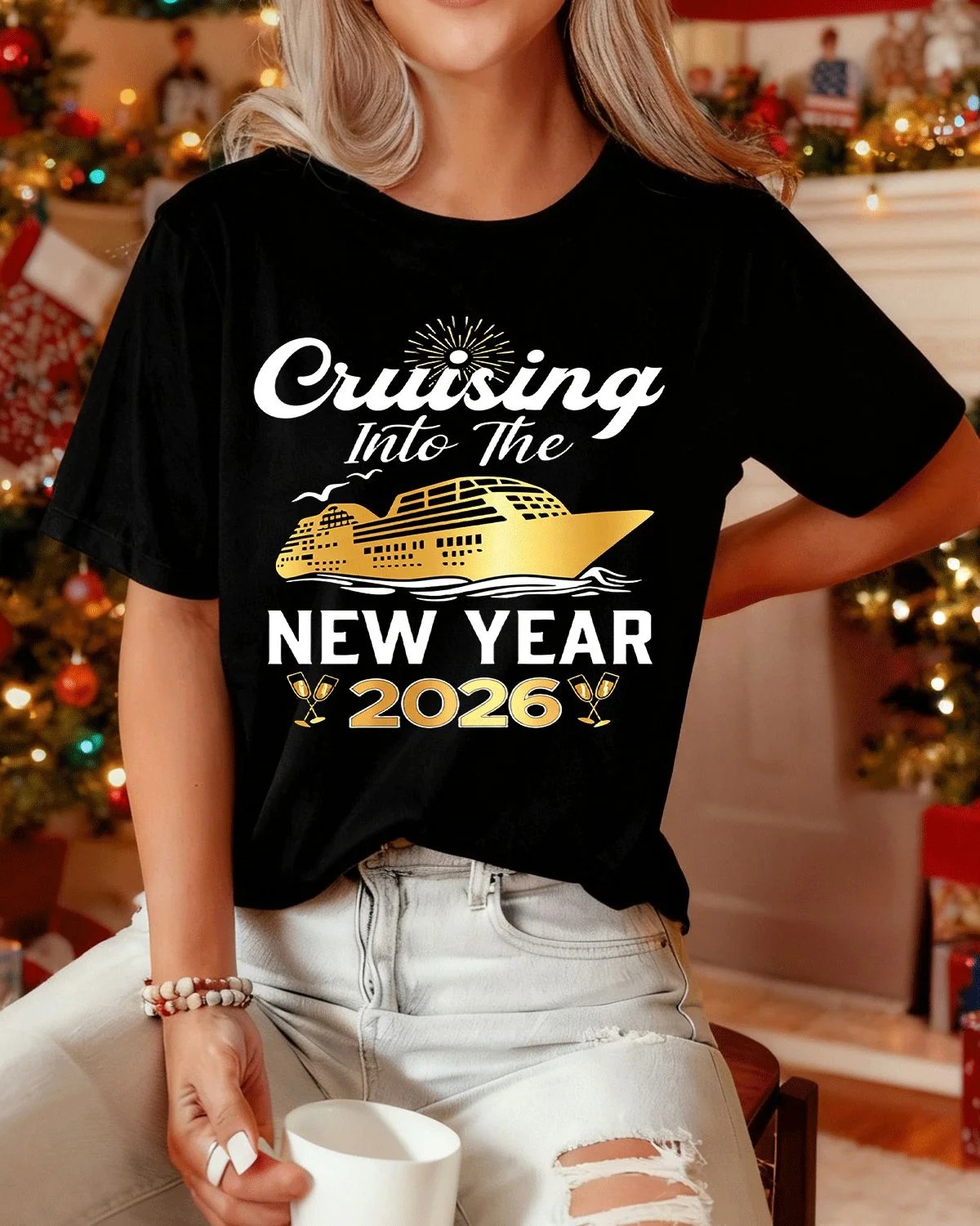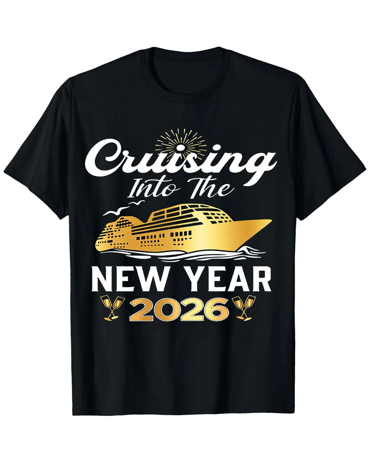 Cruising Into the 2026 New Year Yacht Summer Cotton Graphic T Shirt - Casual Vintage, Short Sleeve, Soft Fabric, Comfortable Fit