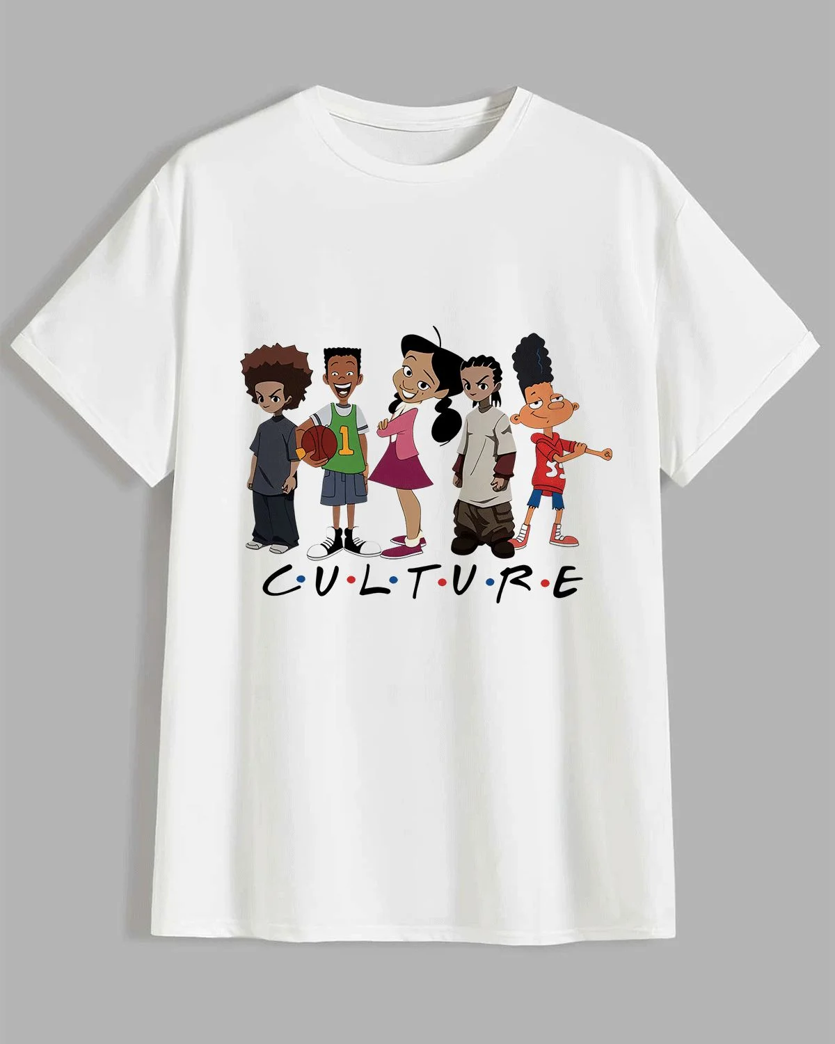 Culture Cartoon Characters Summer Cotton Graphic T Shirt - Casual Retro,Short Sleeve,Soft Fabric,Comfortable Fit
