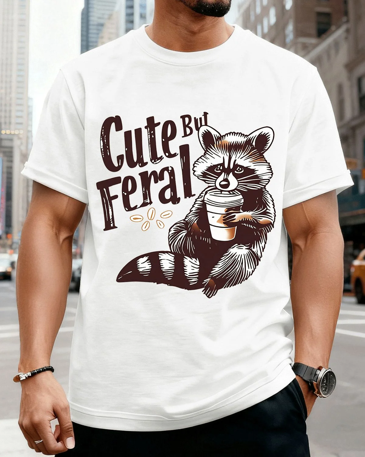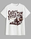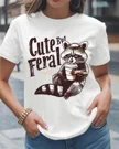 Cute But Feral Raccoon Coffee Summer Cotton Graphic T Shirt - Funny Vintage, Short Sleeve, Soft Fabric, Comfortable Fit