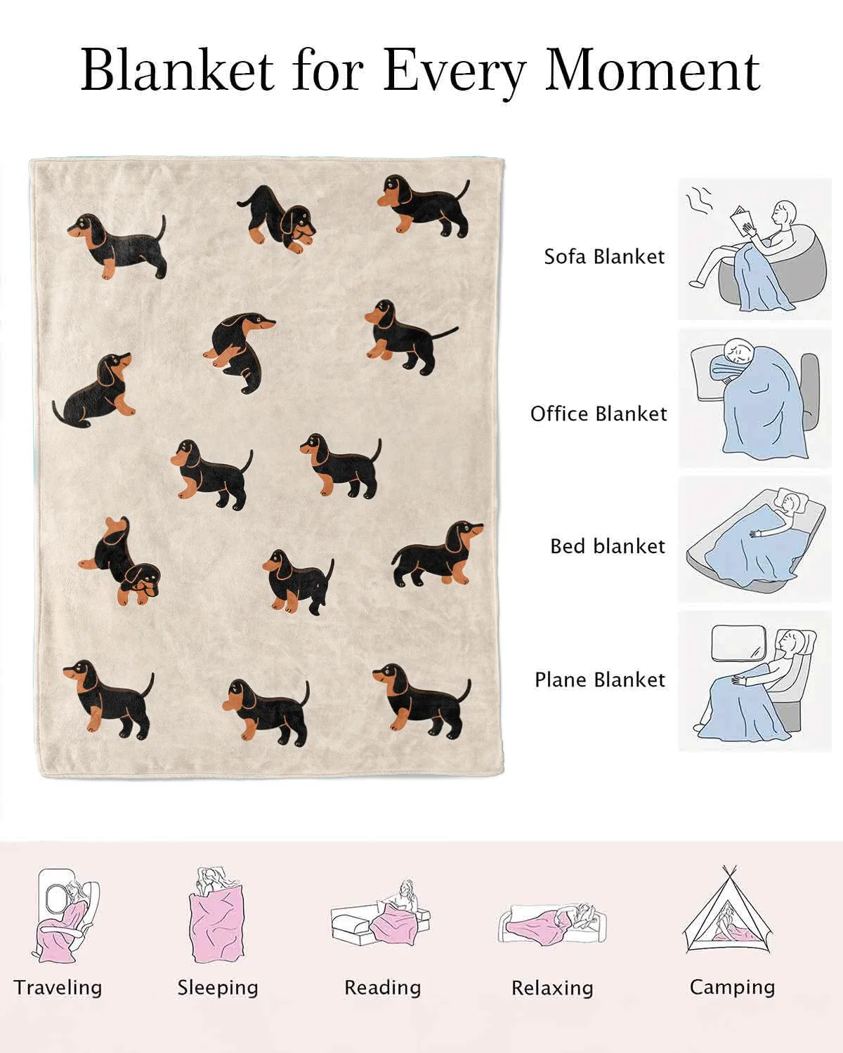 Cute Dachshund Dog Lover Gift Blanket-Cozy Cute,Plush,Warm,Lightweight,For Couch,Bedroom Use
