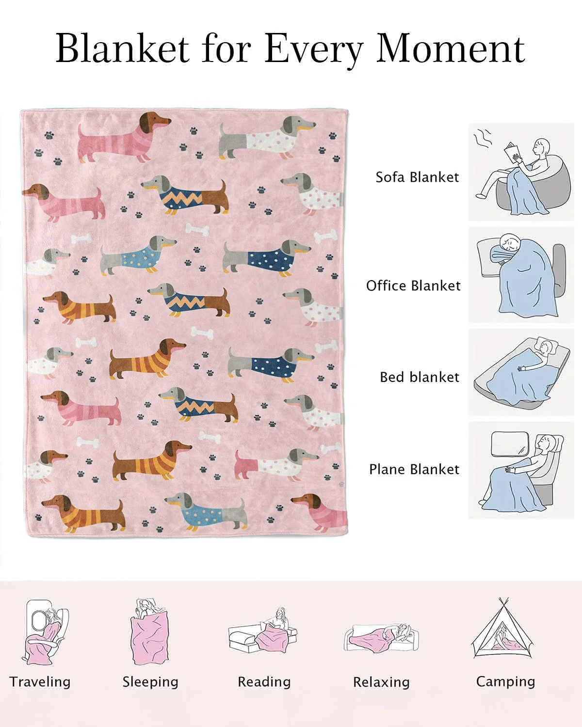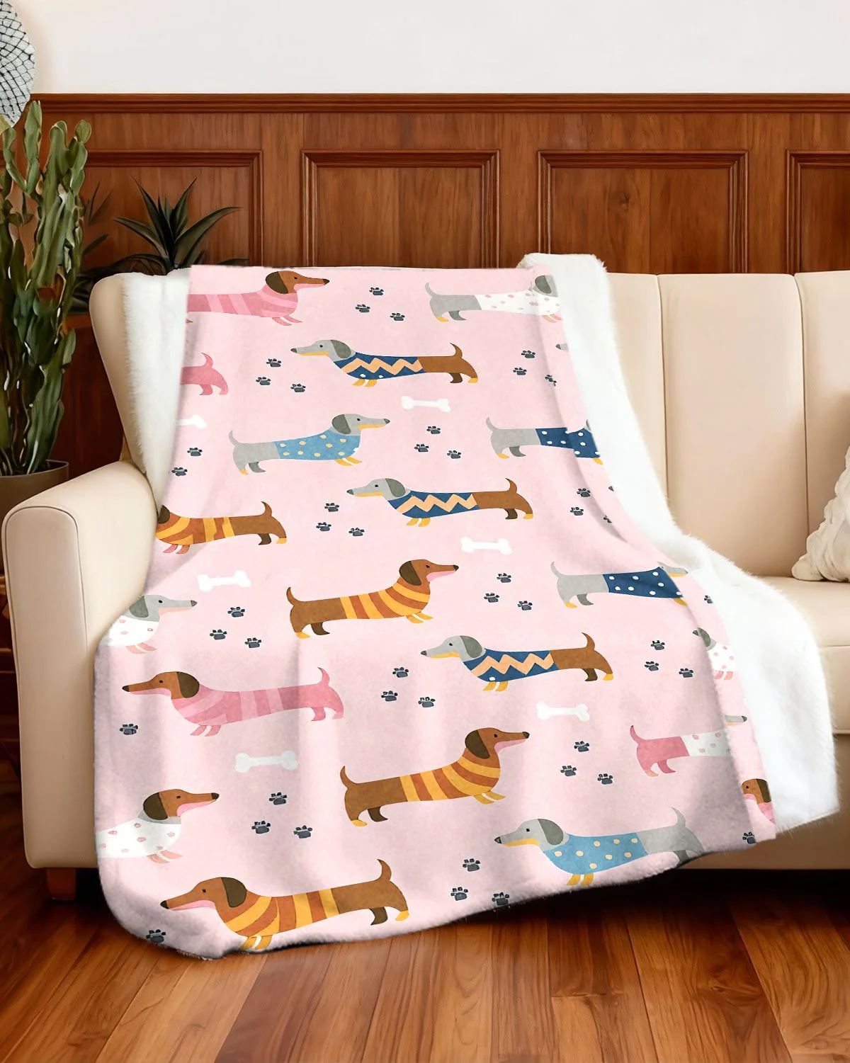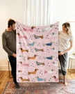 Cute Dachshund Puppy Love Gift Cozy Flannel Blanket-Cute Modern,Plush,Warm,Lightweight,For Couch,Bedroom Use