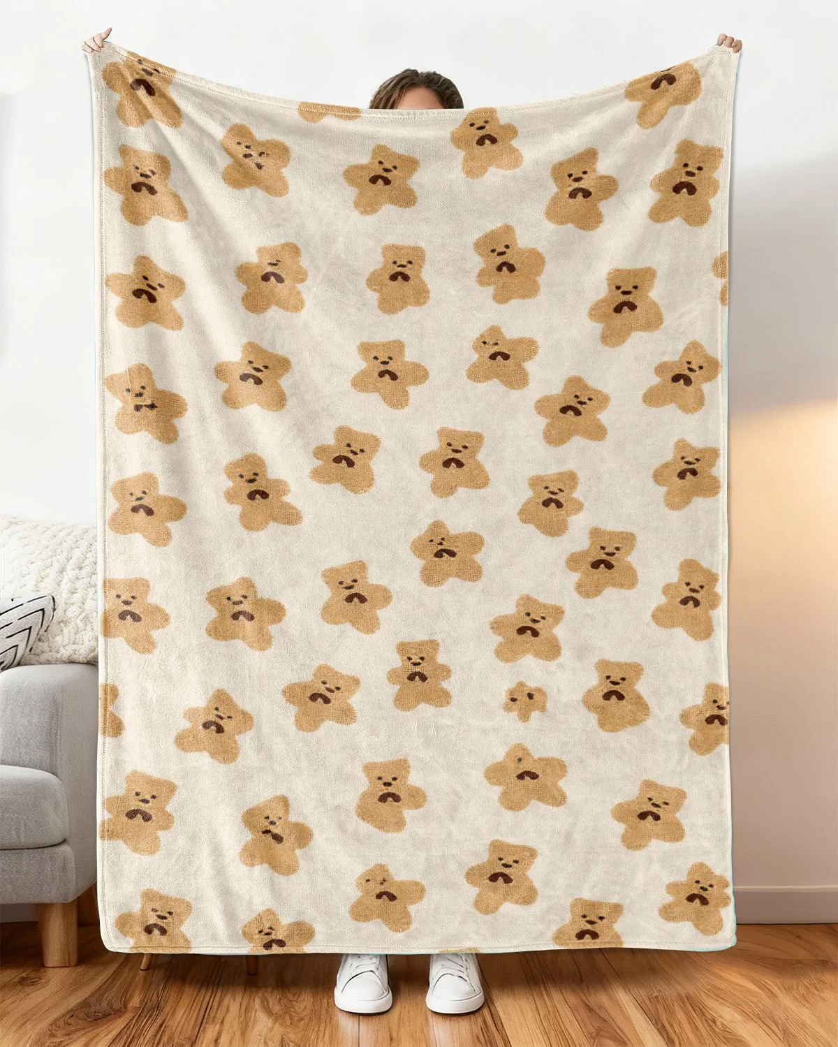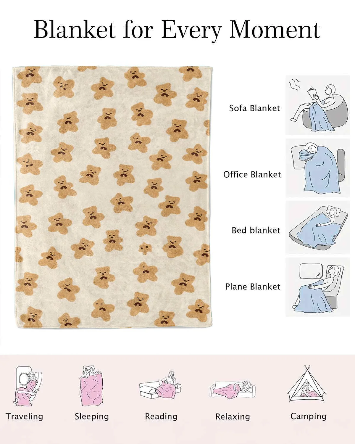 Cute Teddy Bear Love Gift Cozy Flannel Blanket-Cute Modern,Plush,Warm,Lightweight,For Couch,Bedroom Use