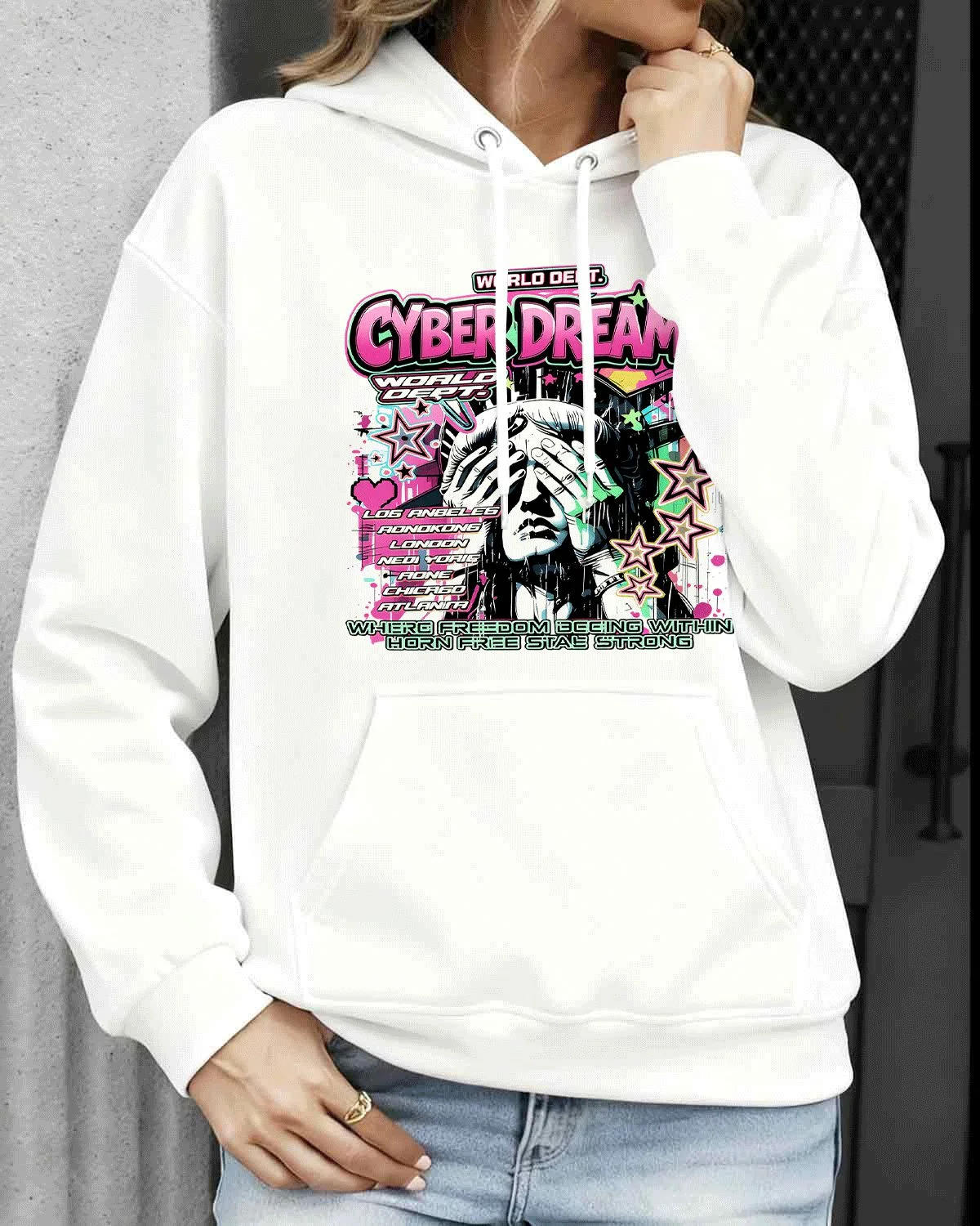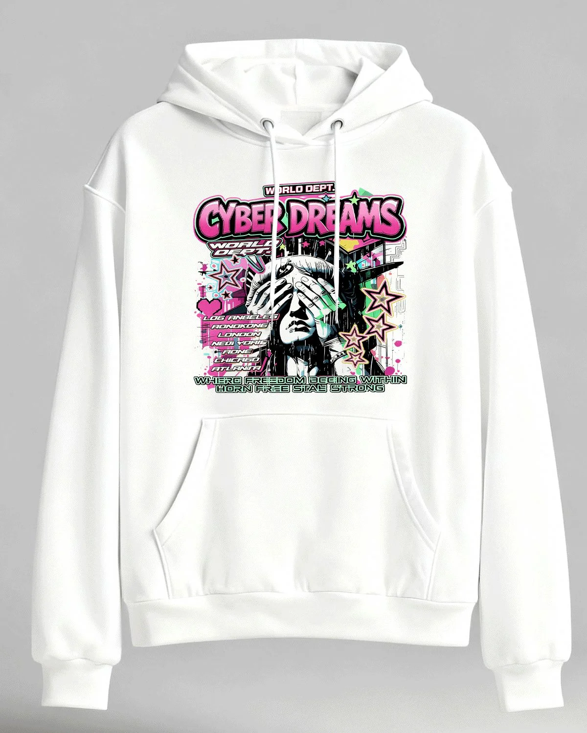 Cyber Dreams Liberty Statue Cozy Cotton Graphic Hoodie with Pocket-Urban Retro,Long Sleeve,Soft Fabric,Comfortable Fit