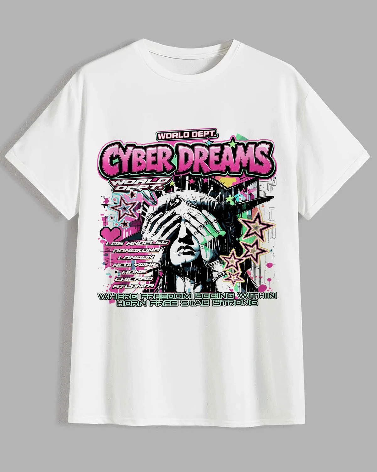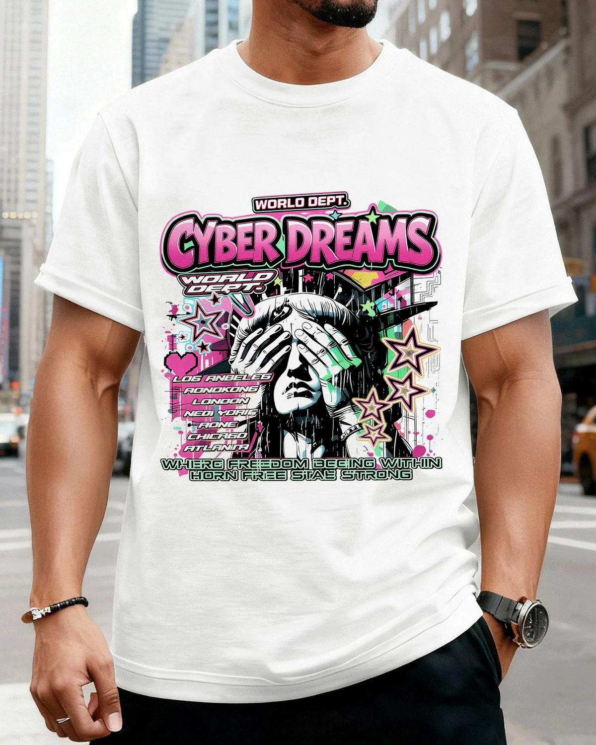 Cyber Dreams Liberty Statue Summer Cotton Graphic T Shirt - Urban Retro,Short Sleeve,Soft Fabric,Comfortable Fit