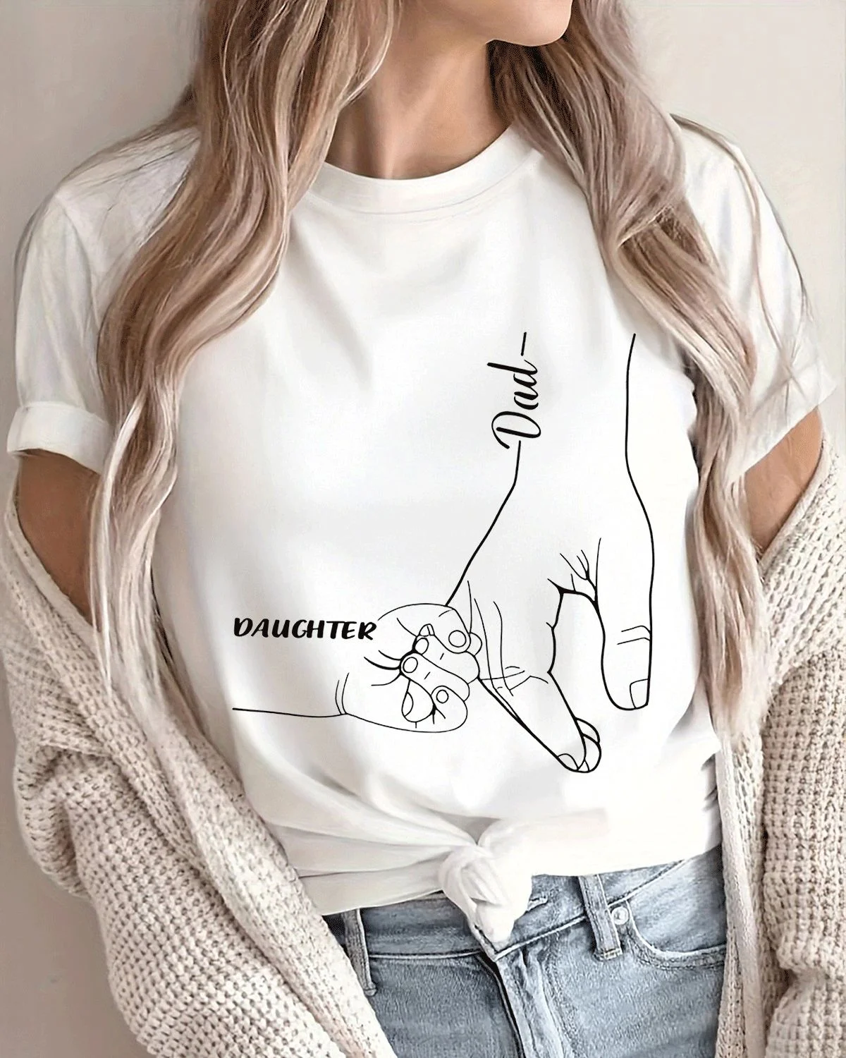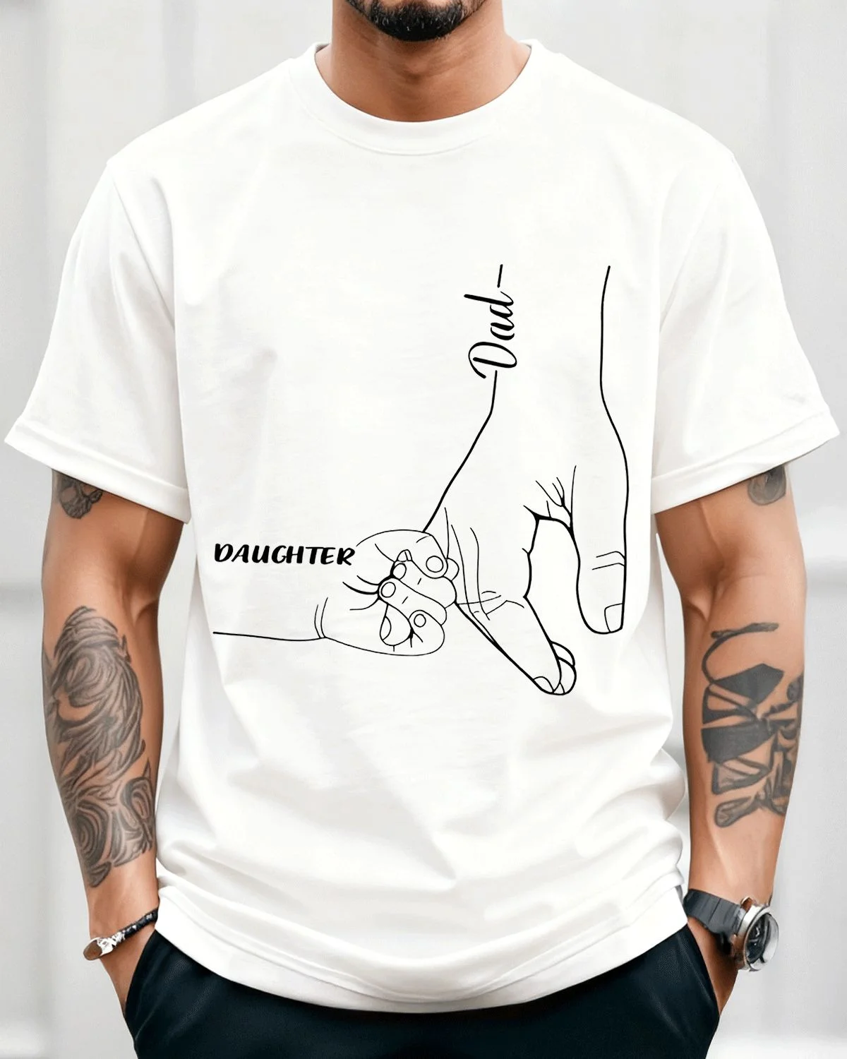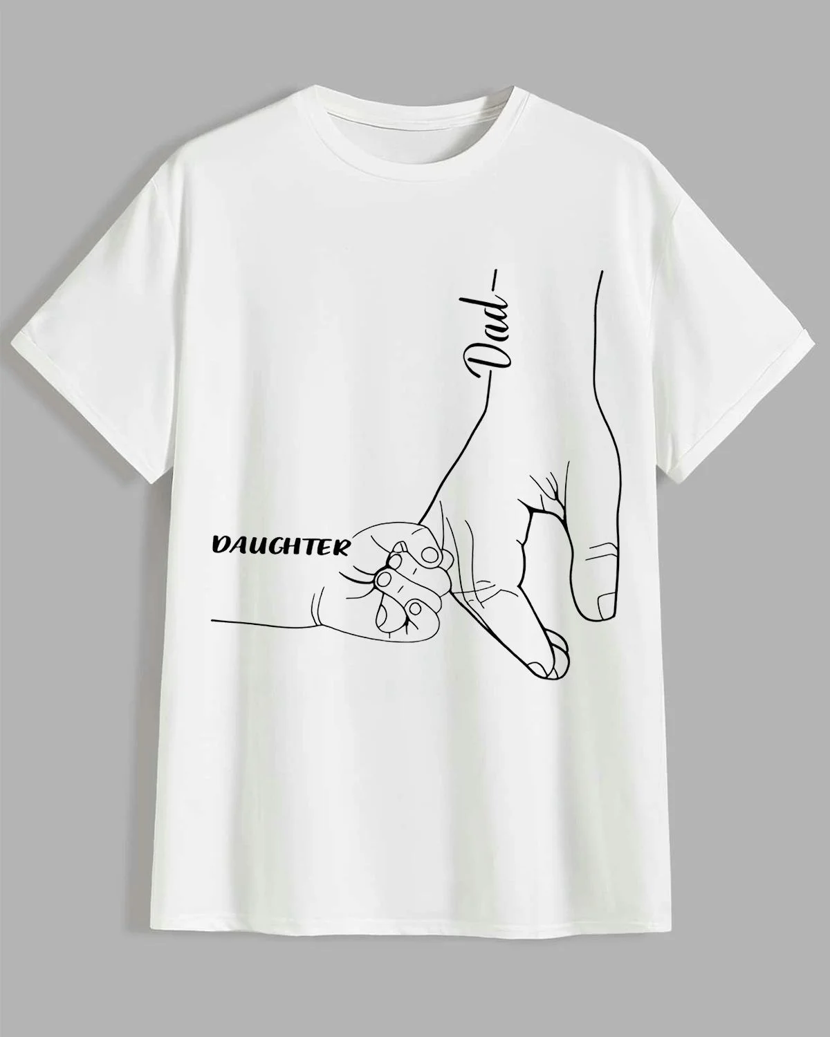 Dad and Daughter Holding Hands Summer Cotton Graphic T Shirt - Casual Vintage, Short Sleeve, Soft Fabric, Comfortable Fit