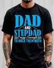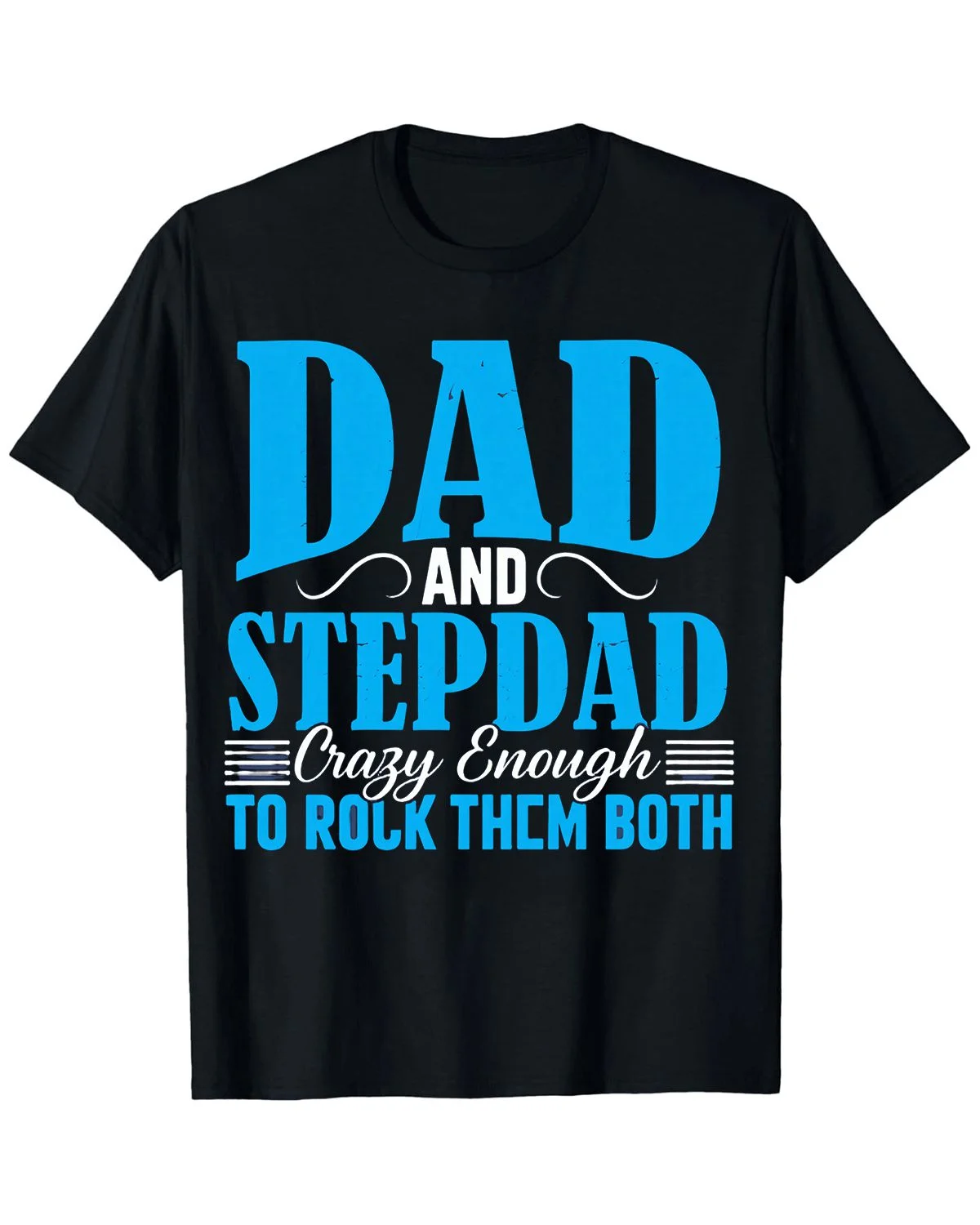 Dad and Stepdad Crazy Enough to Rock Them Both Summer Cotton Graphic T Shirt - Casual Funny, Short Sleeve, Soft Fabric, Comfortable Fit