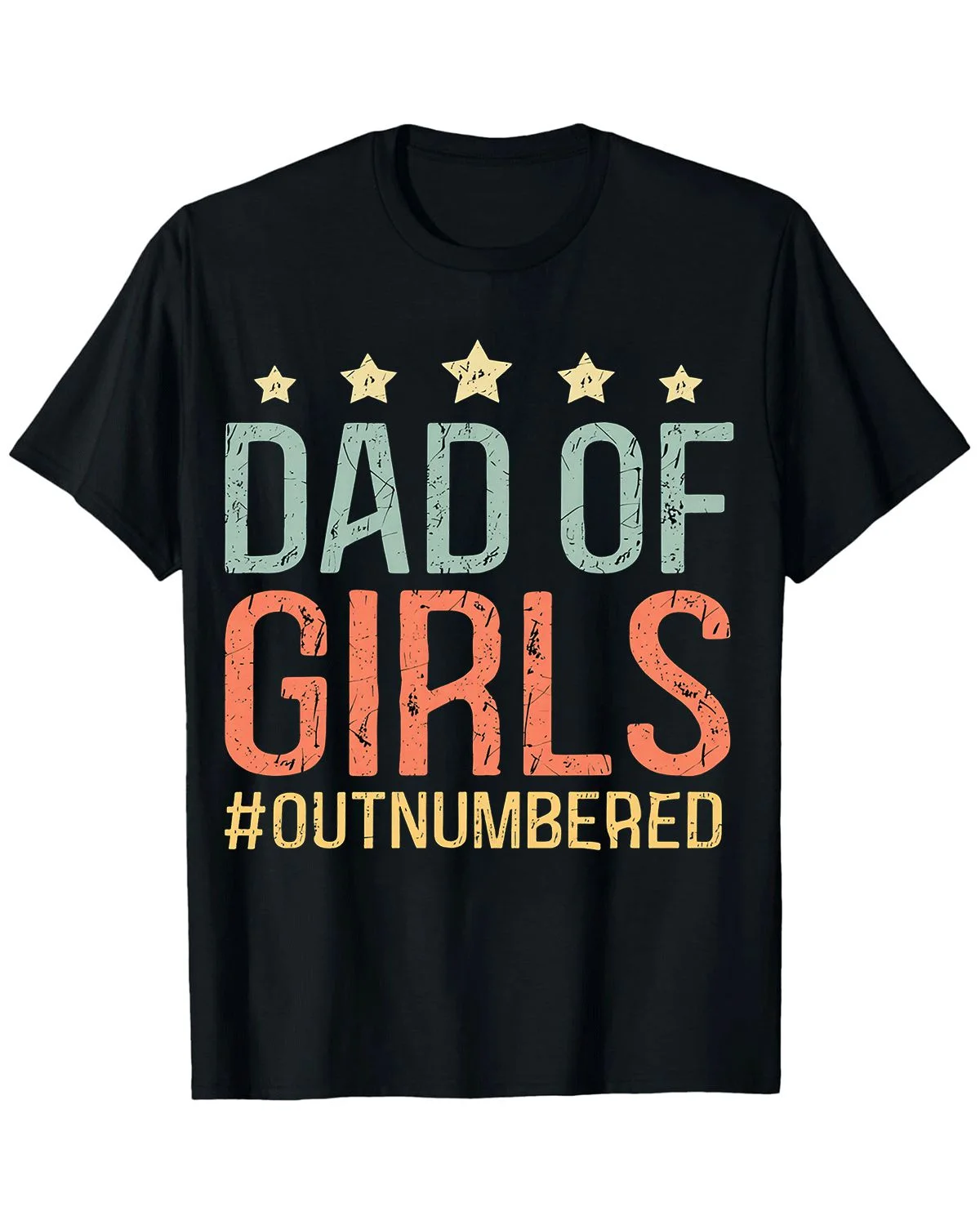 Dad of Girls Outnumbered Summer Cotton Graphic T Shirt - Vintage Retro, Short Sleeve, Soft Fabric, Comfortable Fit