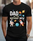 Dad of the Birthday Boy Astronaut and Rocket Summer Cotton Graphic T Shirt - Casual Funny, Short Sleeve, Soft Fabric, Comfortable Fit