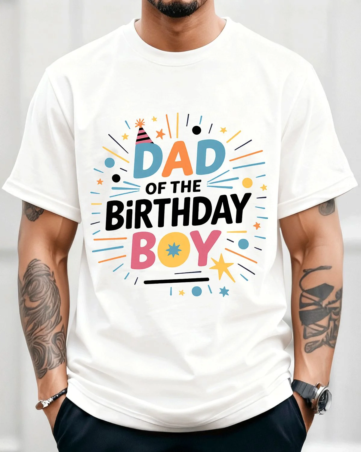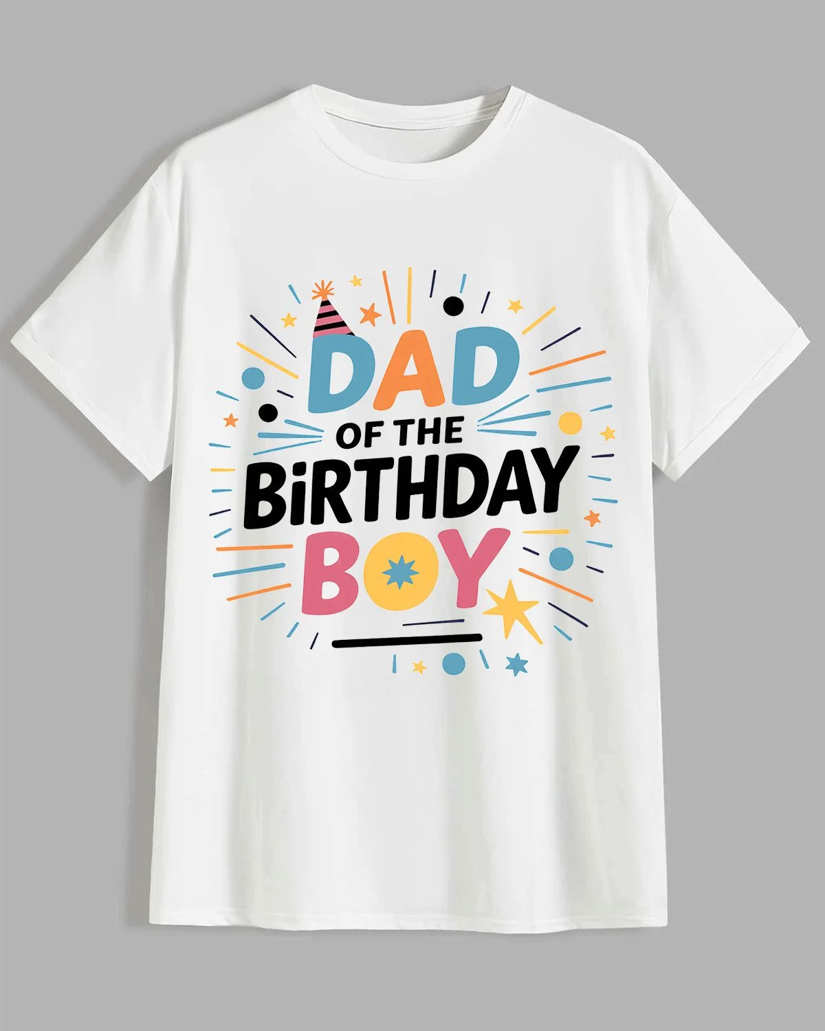 Dad of the Birthday Boy Party Celebration Summer Cotton Graphic T Shirt - Casual Funny, Short Sleeve, Soft Fabric, Comfortable Fit
