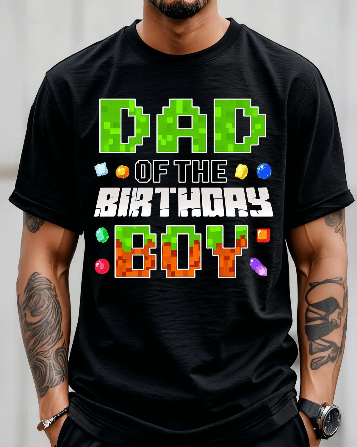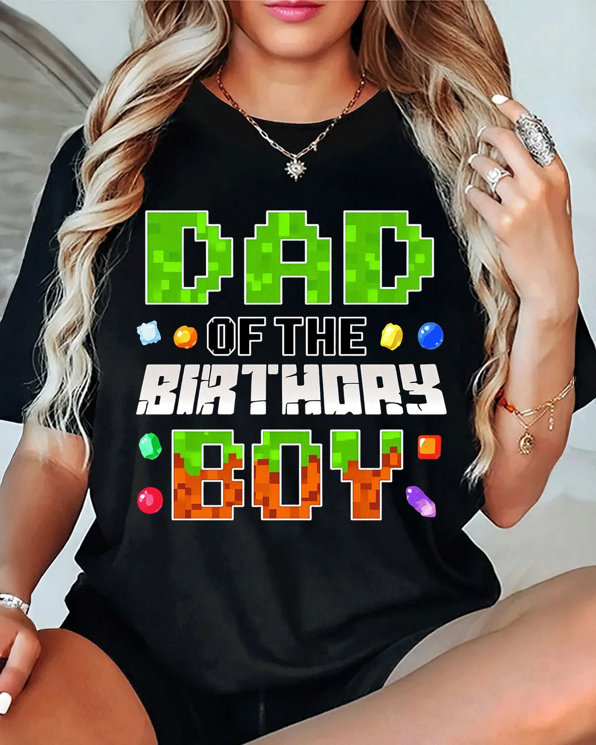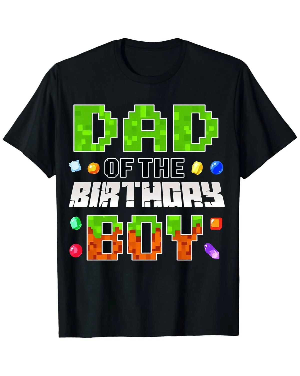 Dad of the Birthday Boy Summer Cotton Graphic T Shirt - Casual Funny, Short Sleeve, Soft Fabric, Comfortable Fit