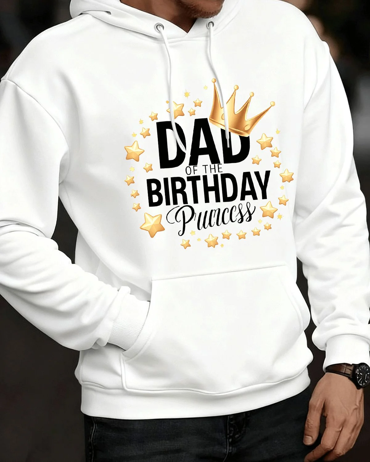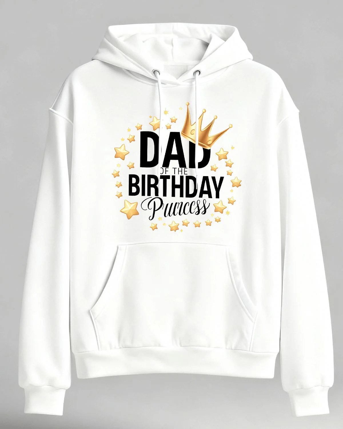 Dad of the Birthday Princess Crown and Stars Cozy Graphic Hoodie for Men and Women - Casual Graphic, Long Sleeve, Soft Fabric, Comfortable Fit