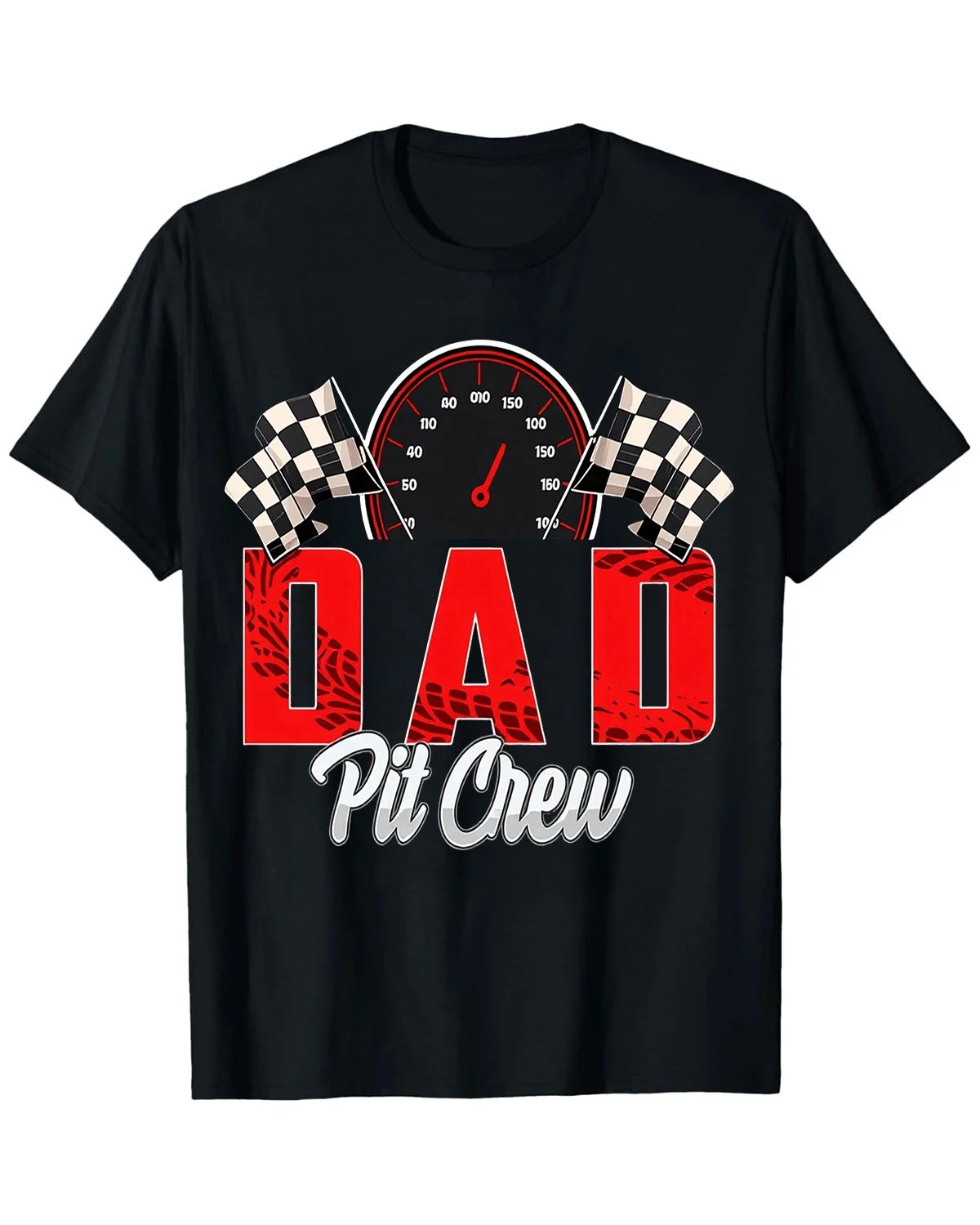 Dad Pit Crew Summer Cotton Graphic T Shirt - Sporty Retro, Short Sleeve, Soft Fabric, Comfortable Fit