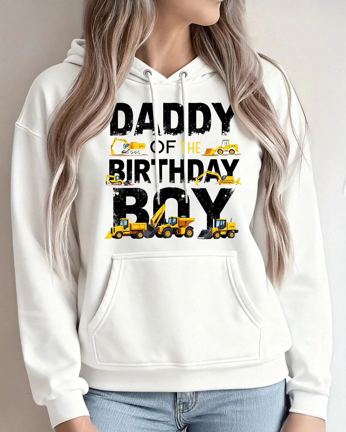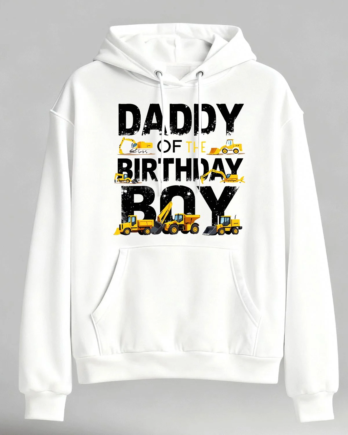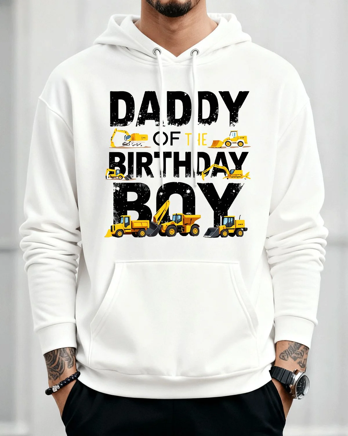 Daddy of the Birthday Boy Construction Vehicles Cozy Graphic Hoodie for Men and Women - Casual Funny, Long Sleeve, Soft Fabric, Comfortable Fit
