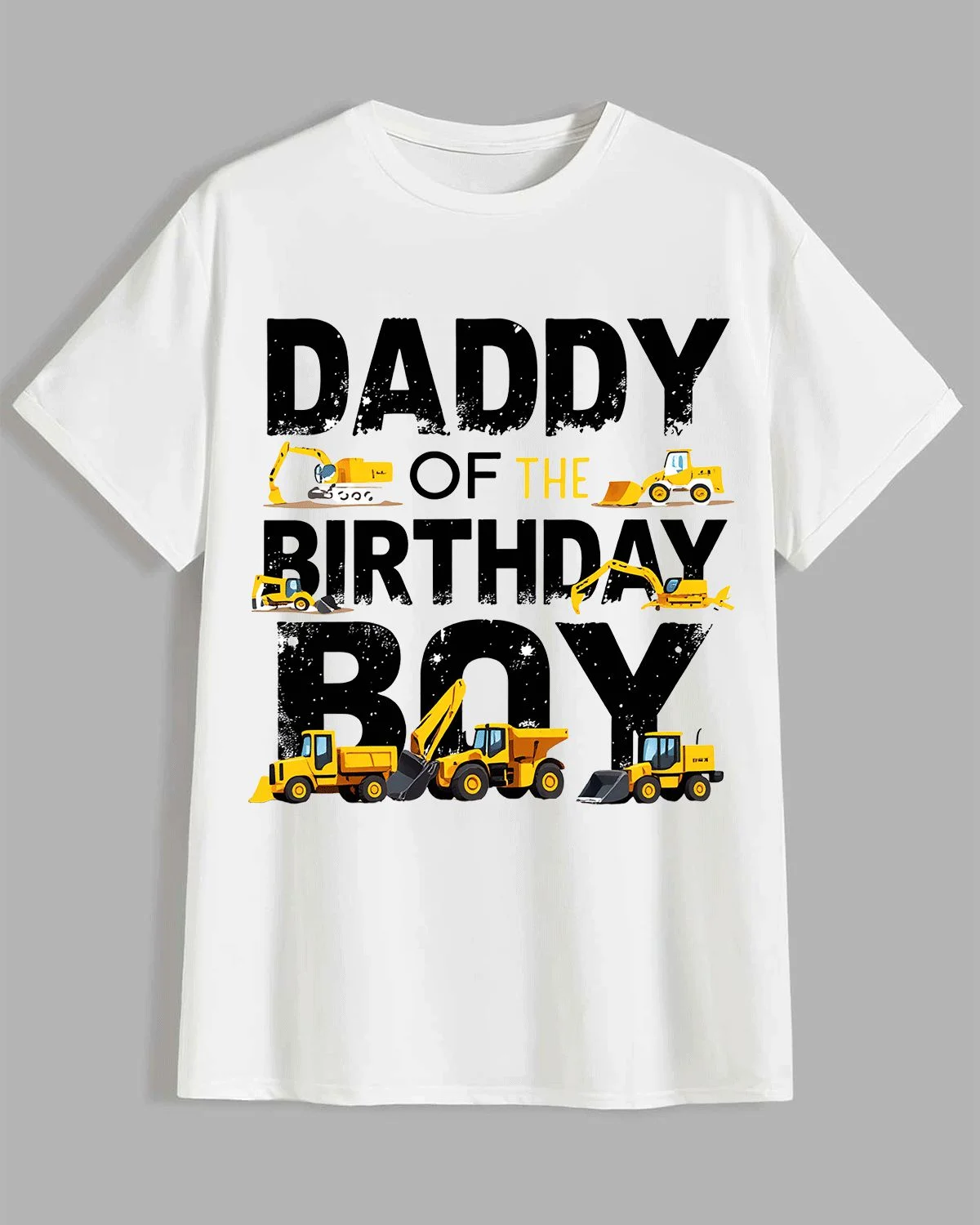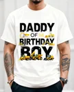 Daddy of the Birthday Boy Construction Vehicles Summer Cotton Graphic T Shirt - Casual Funny, Short Sleeve, Soft Fabric, Comfortable Fit