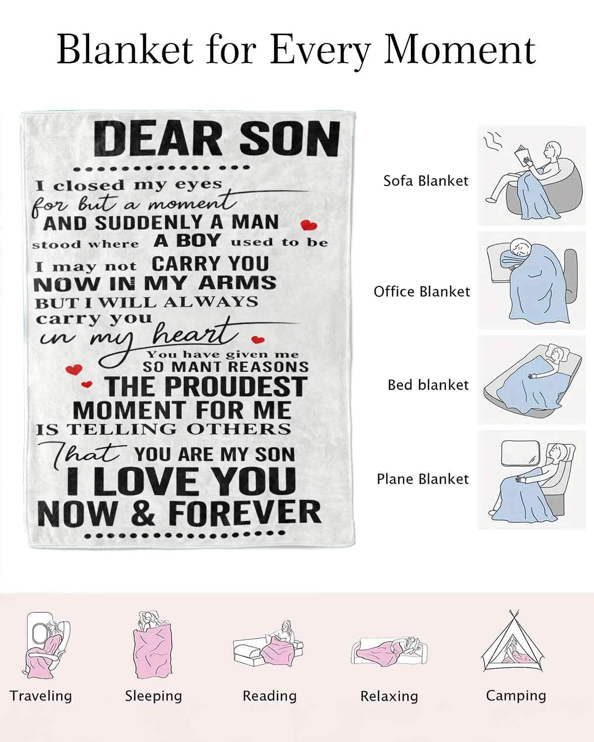 Dear Son Love and Pride Letter Cozy Flannel Blanket-Classic,Modern,Super Soft,Warm,Lightweight,For Couch,For Bed